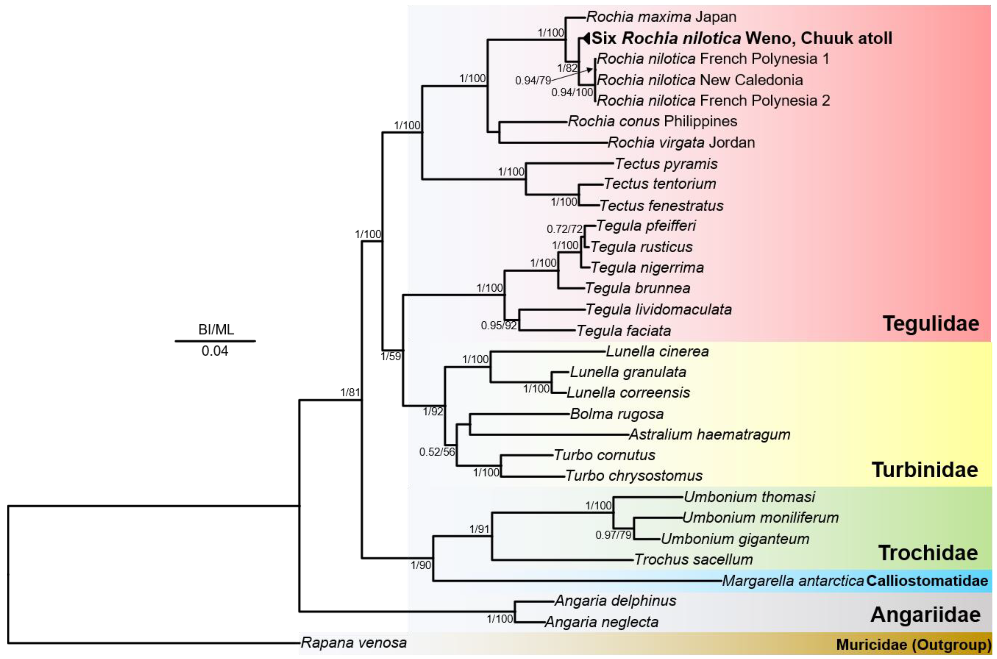 Cryptic Divergence of Rochia nilotica (Gastropoda: Tegulidae) from Chuuk Lagoon, Federated States of Micronesia, Revealed by Morphological and Mitochondrial Genome Analyses