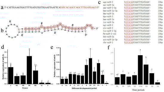 3.1. Identification of miR-2c Precursor and Mature Sequence