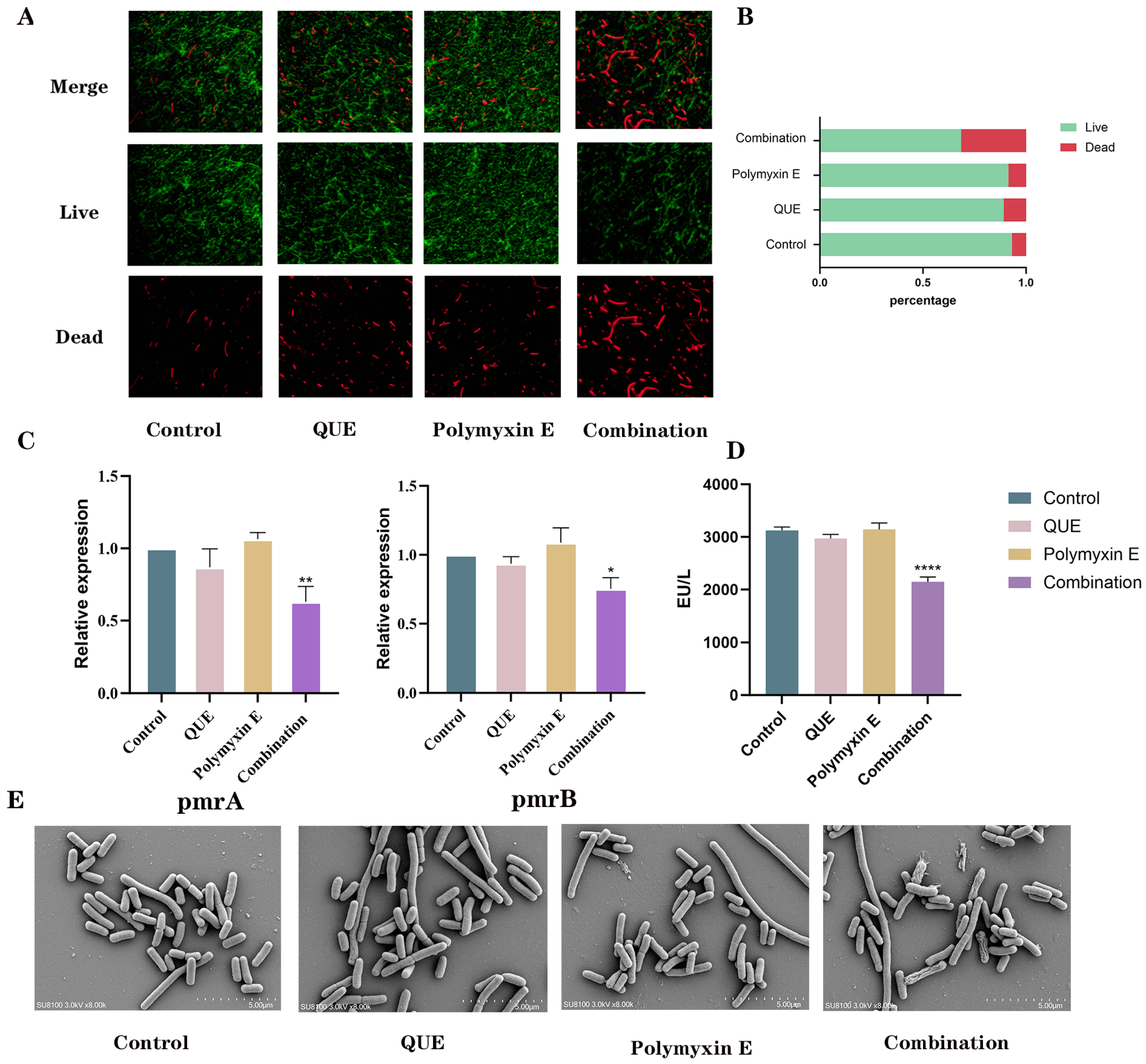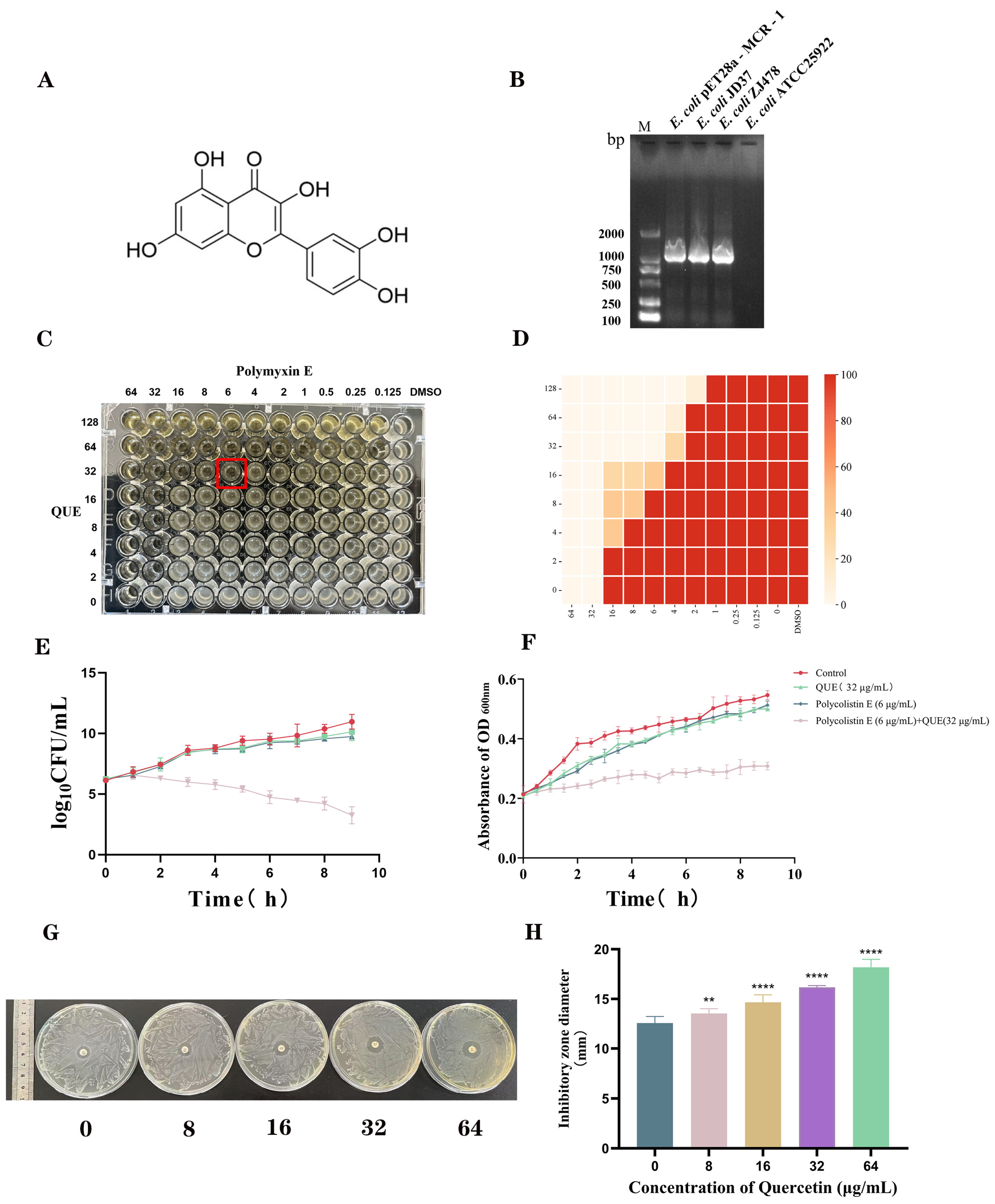 3.1. QUE Restored the Sensitivity of E. coli JD37 to Polymyxin E