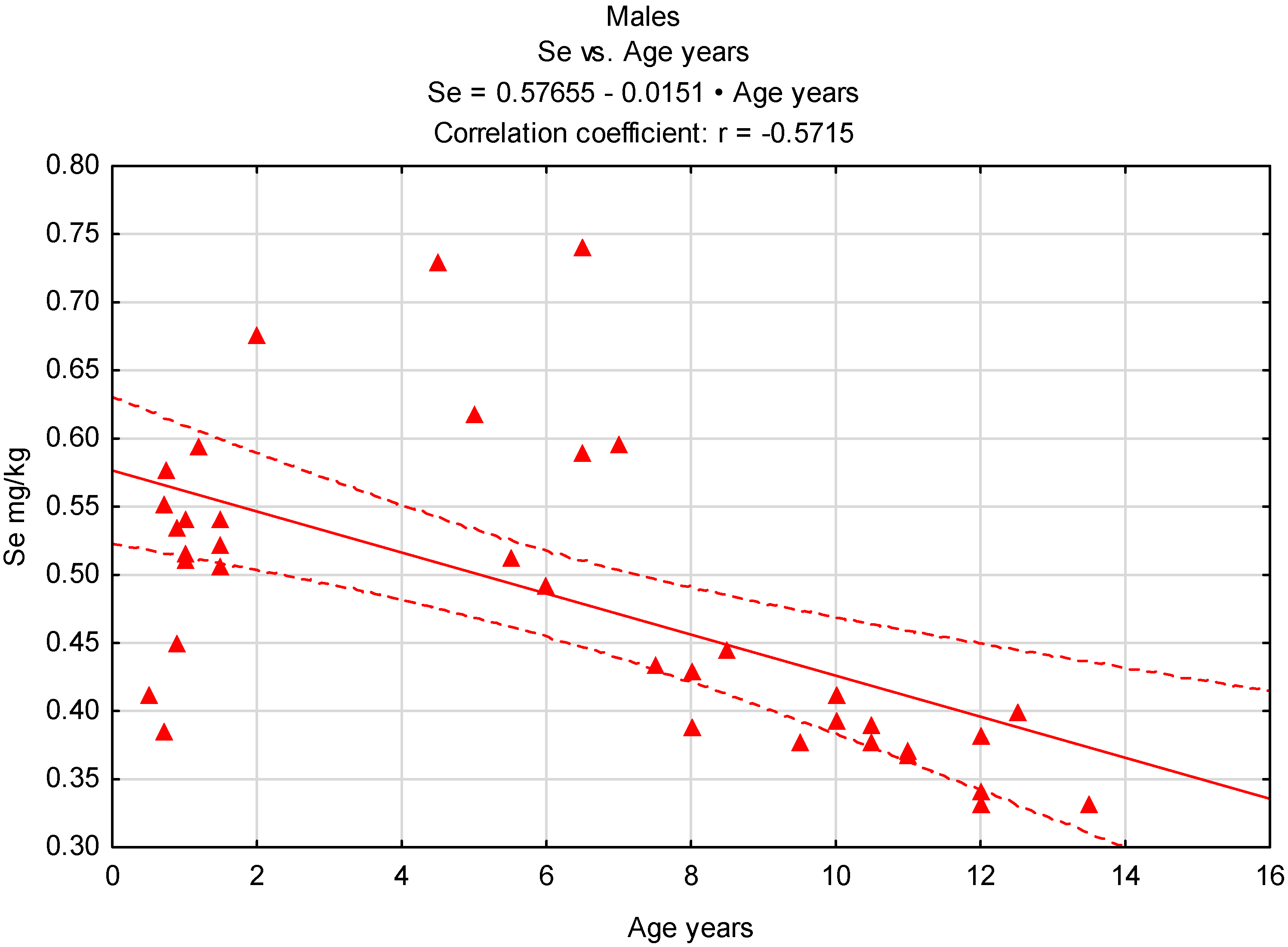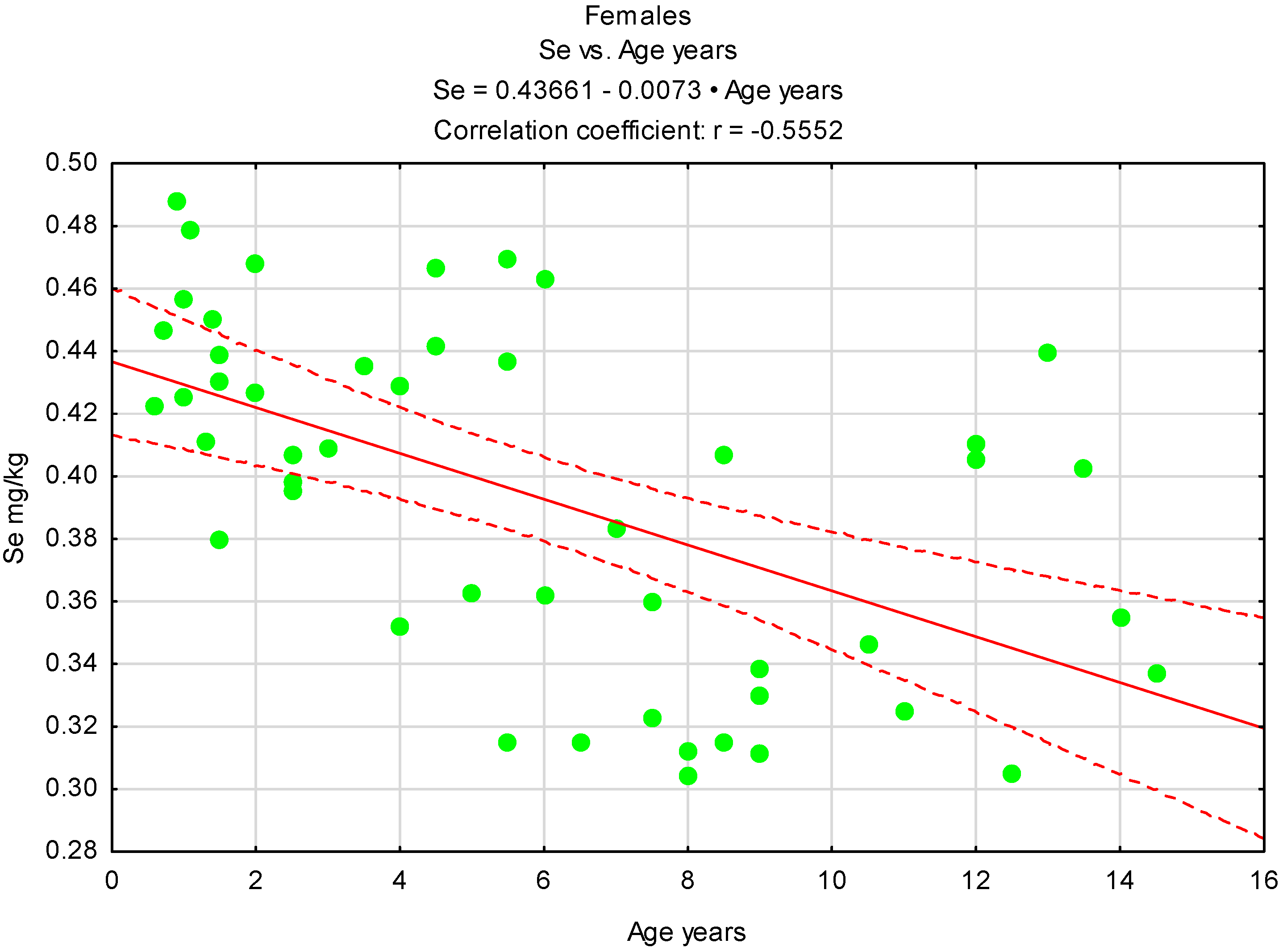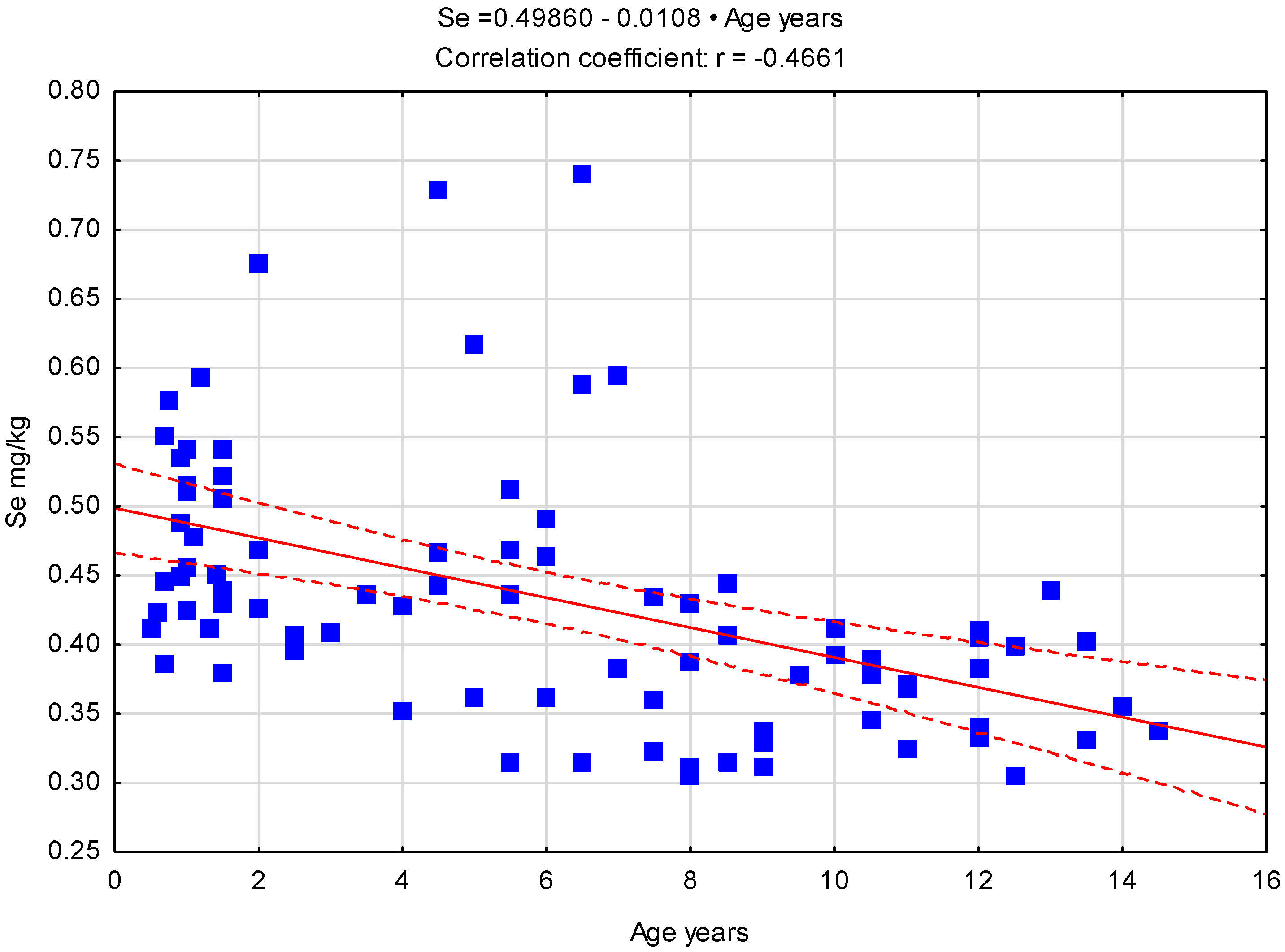 3.1. The Impact of Age on Se Concentration in the Gonads of Dogs