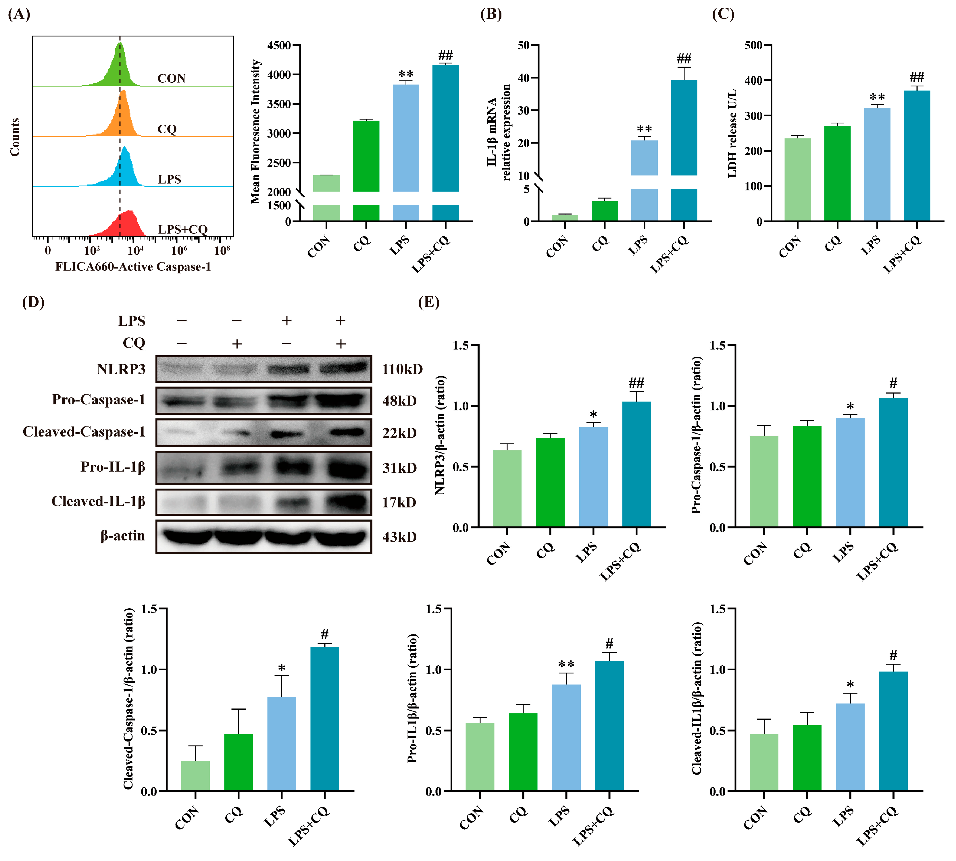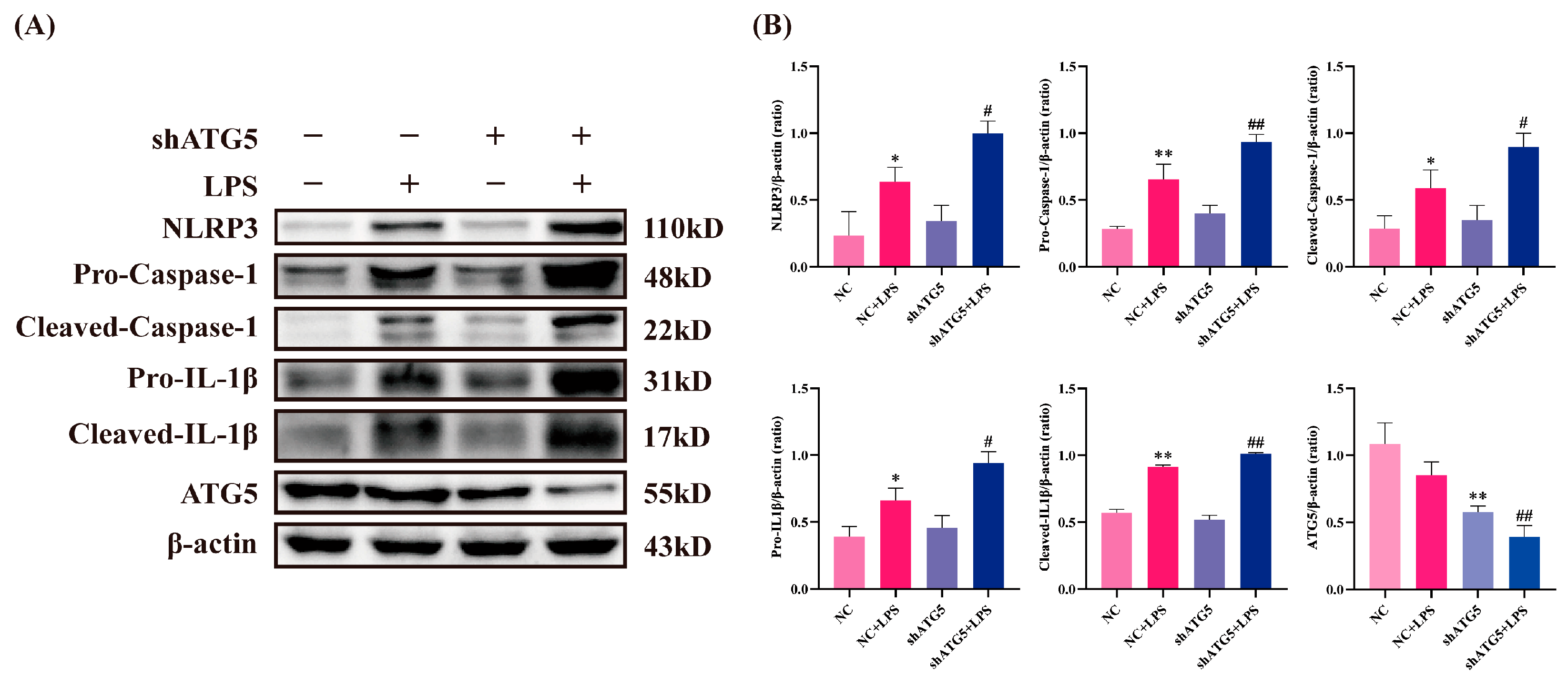 3.2. Inhibition of Autophagy Enhanced LPS-Induced Activation of the NLRP3 Inflammasome
