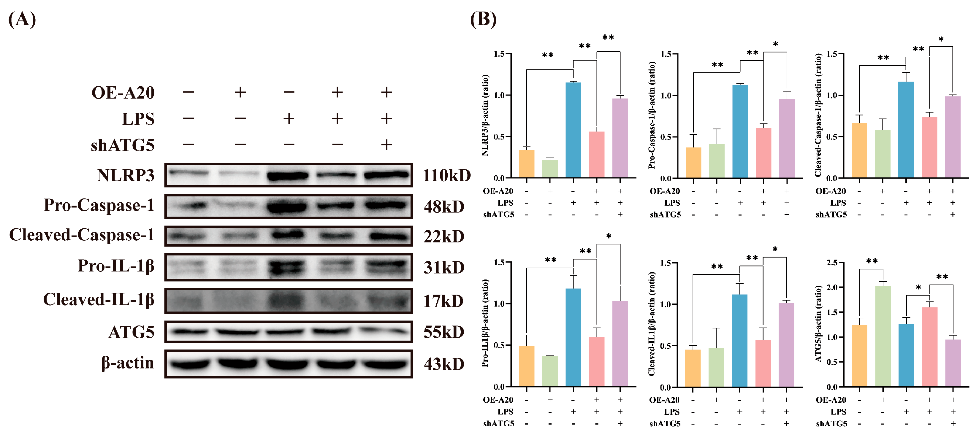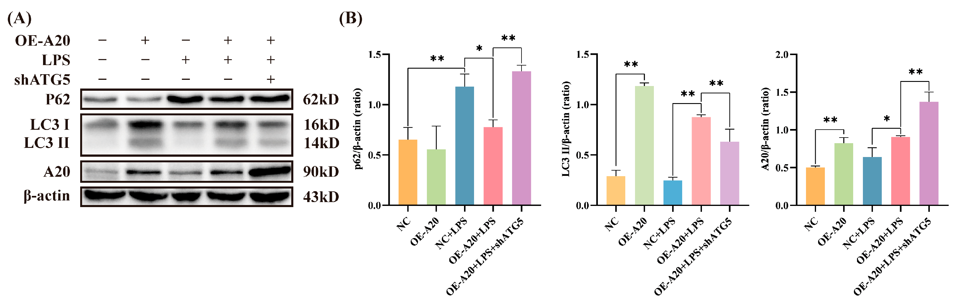 3.5. A20 Reduced NLRP3 Inflammasome Activity via Autophagy