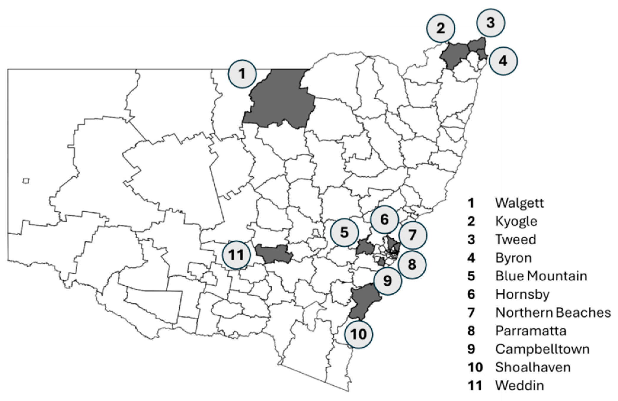 | Reduction in cats impounded | 10% reduction | Major reductions in Blue Mountains (−54%), Campbelltown (−59%), Parramatta (−73%), Walgett (−100%); increases in Northern Beaches (+53%), Weddin (+380%) | Increase in Weddin reflects improved community engagement; Northern Beaches had no targeted desexing programme. |