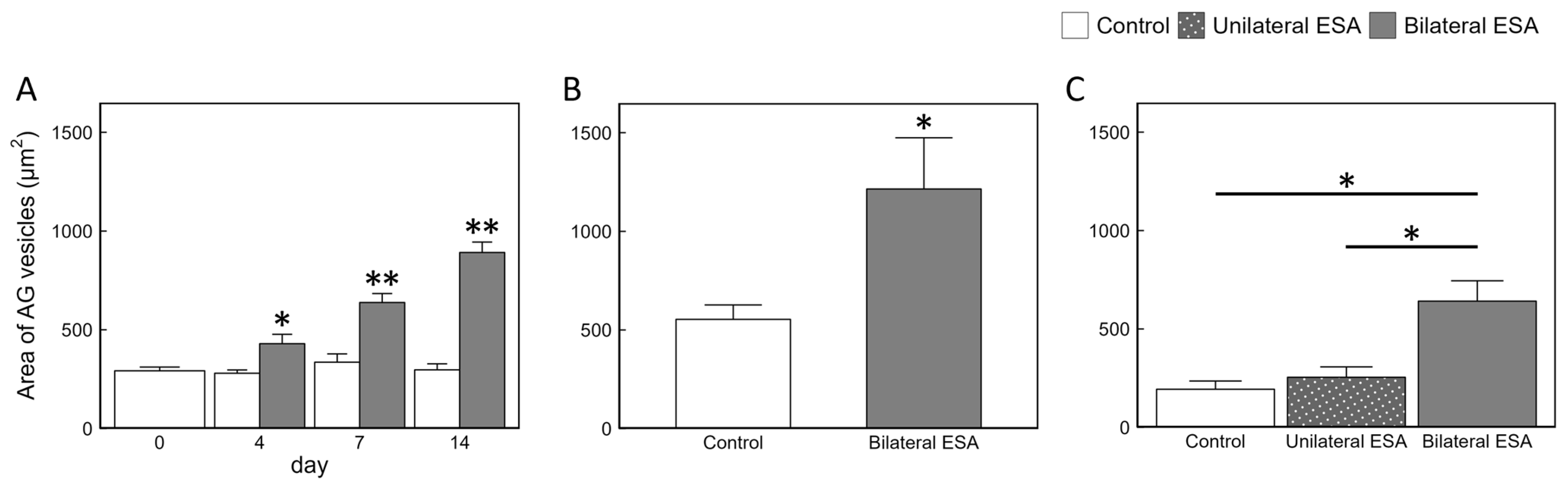 3.3. ESA Effects on AG Area and Spermatogenesis