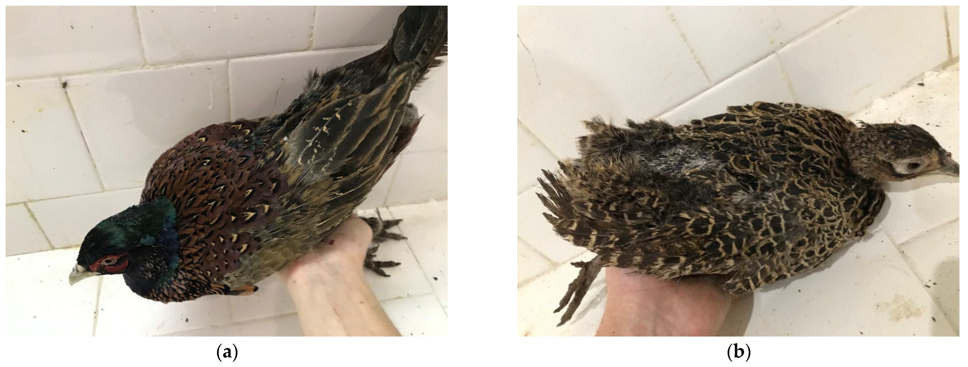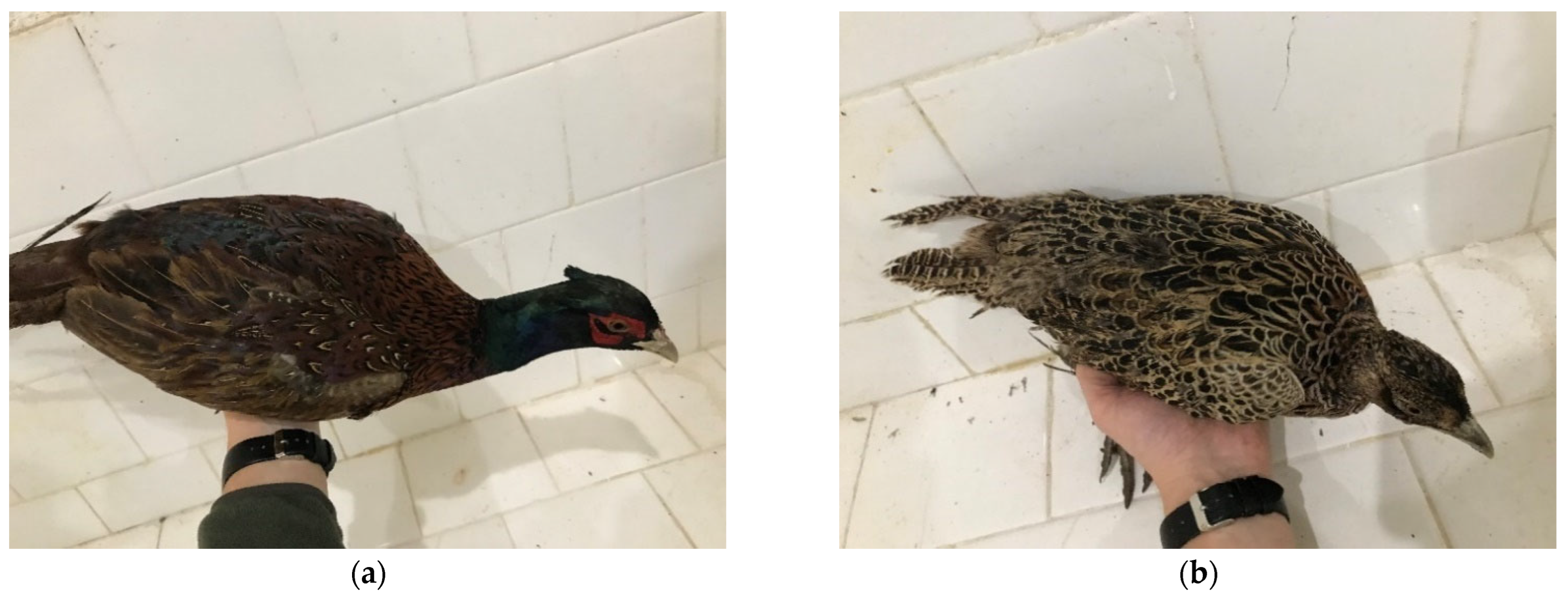 - Kuzniacka, J.; Adamski, M. Growth rate of body weight and measurements in pheasants reared up to the 24th week of life. Arch. Tierz. 2010, 53, 360–367. [Google Scholar] [CrossRef]