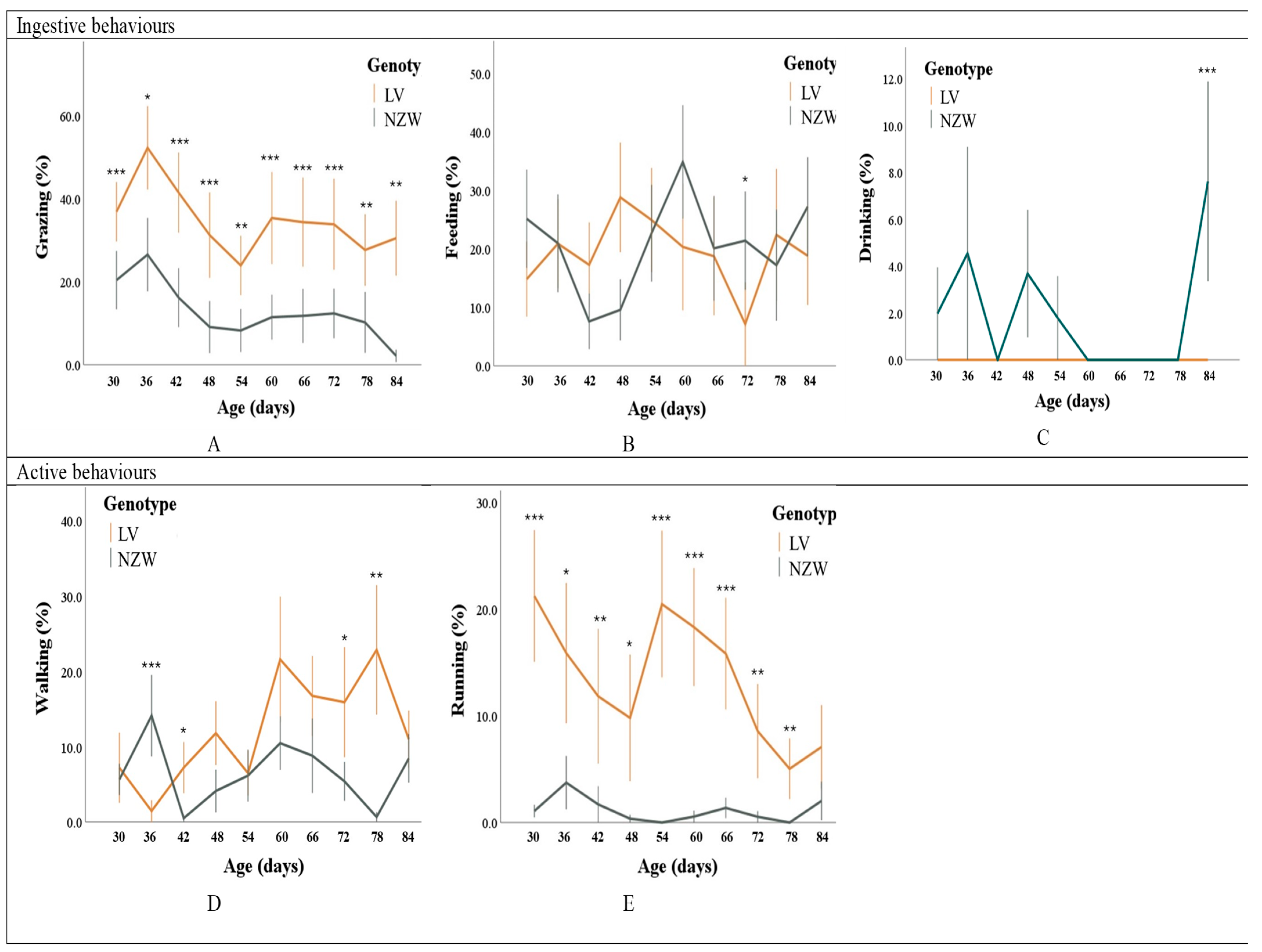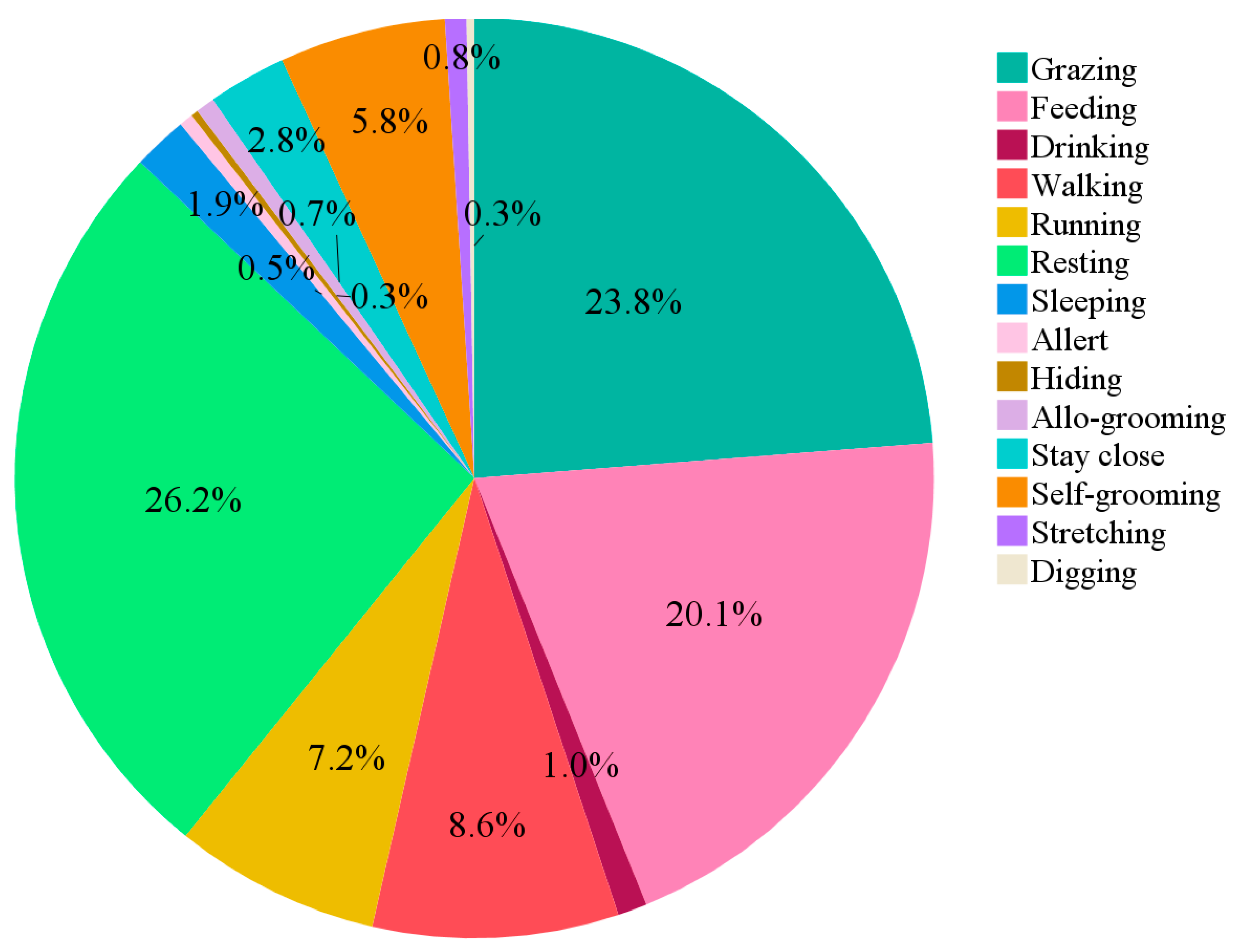 | Ingestive behaviours | Grazing | Eating grass directly from the ground, slowly and continuously |