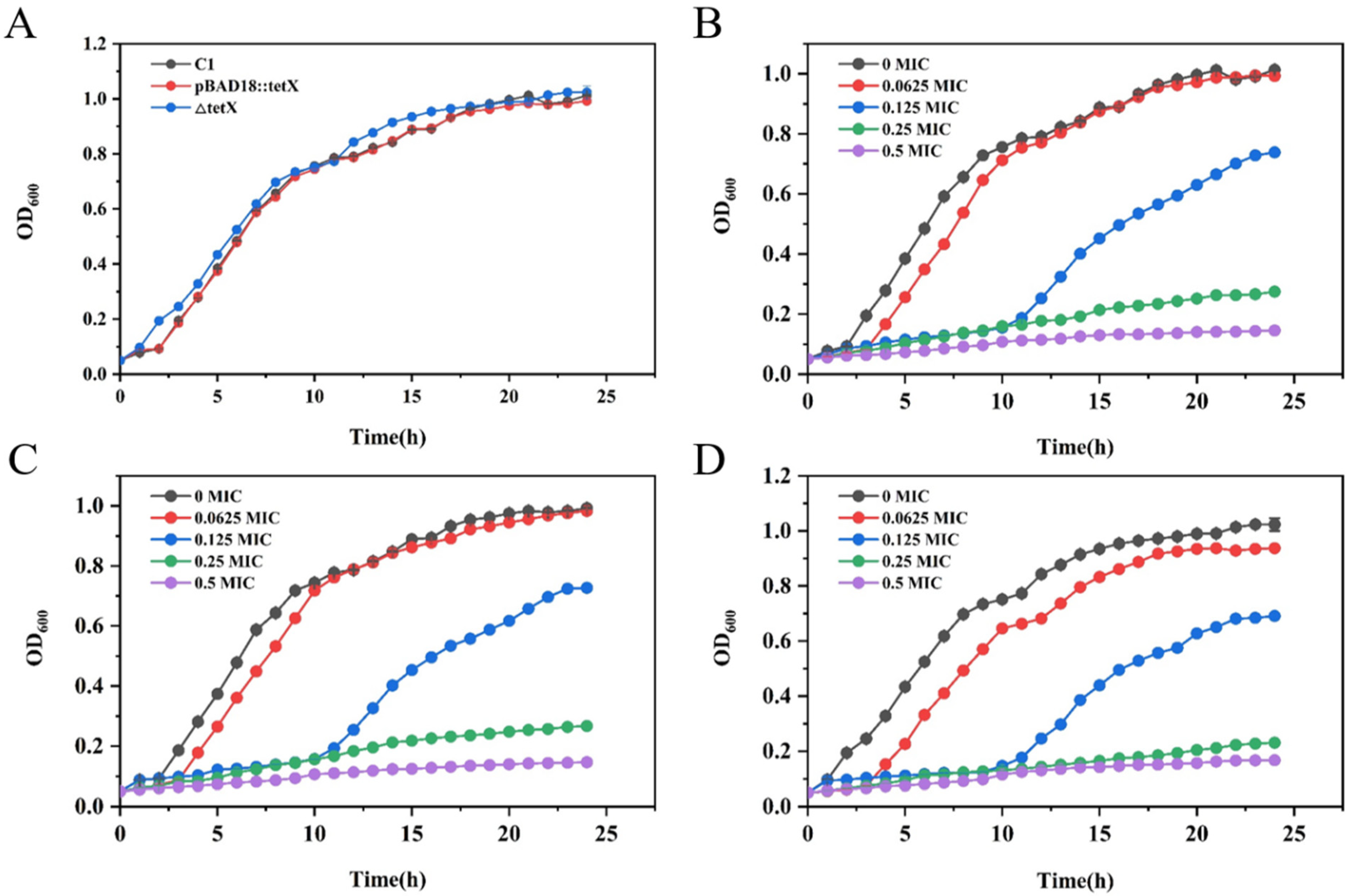 2.2. Construction of the ΔtetX Deletion Mutant and the ΔtetX::tetX Complemented Strain