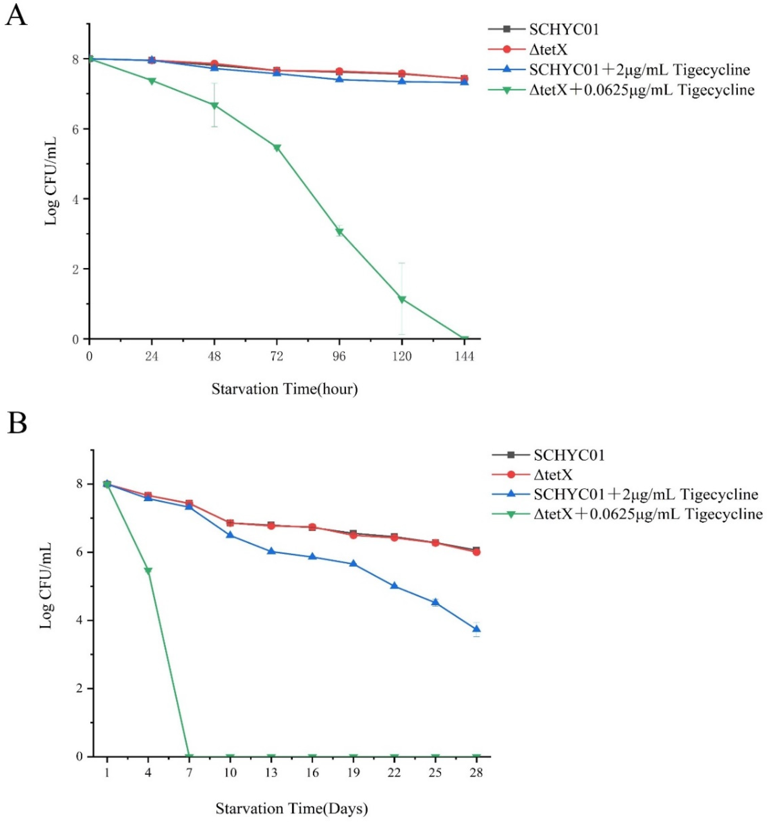 3.3. Determination of Growth Curves of Strains SCHYC01, ΔtetX, and ΔtetX::tetX