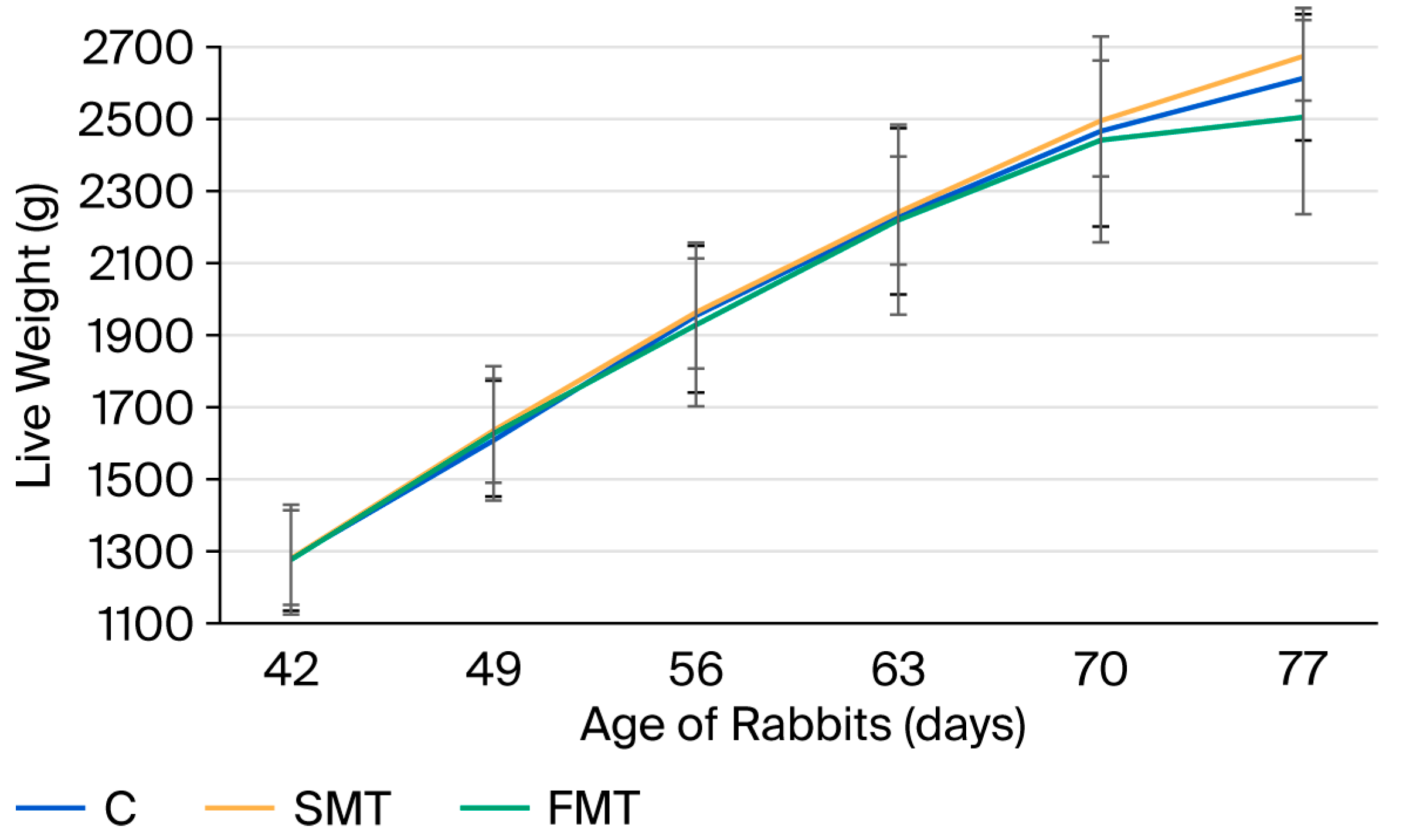 | Live weight (g) | 2737.50 ± 23.03 | 2758.57 ± 14.74 | 2734.29 ± 44.71 |