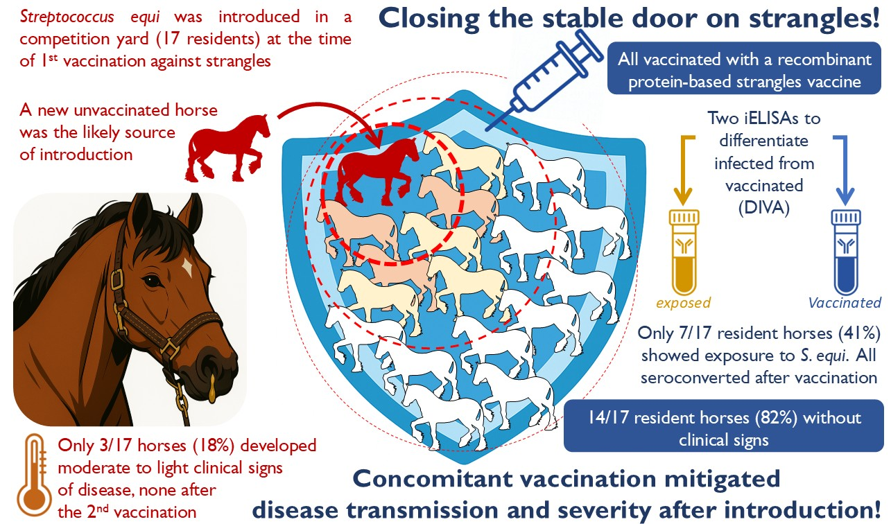 Rask, E.; Righetti, F.; Ruiz, A.; Bjerketorp, J.; Frosth, S.; Frykberg, L.; Jacobsson, K.; Guss, B.; Flock, J.-I.; Henriques-Normark, B.; et al. Closing the Stable Door on Strangles: Serological Responses of Vaccinated Horses on a Farm Following the Arrival of a New Horse. Animals 2025, 15, 3584. https://doi.org/10.3390/ani15243584