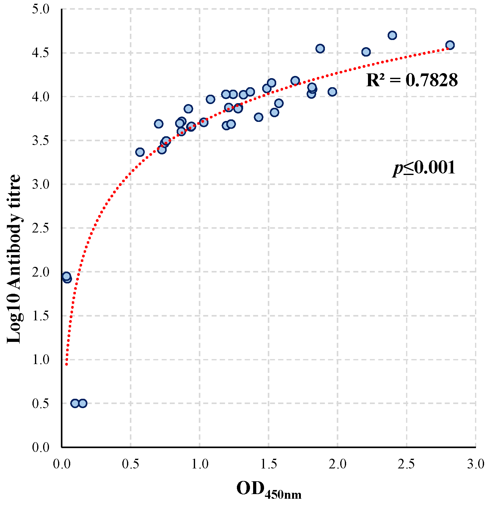 3.4. Comparison of the Conventional and Single Dilution Vaccine Antigen iELISA