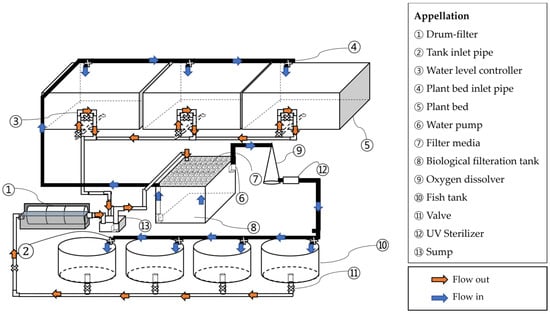 - Park, J.S.; Jeong, H.S.; Lee, J.H.; Hwang, J. Indoor application of coupled FLOCponics system with caipira lettuce (Lactuca sativa) affects the growth performance and water characteristics of Far Eastern catfish (Silurus asotus) and tropical eel (Anguilla bicolor). Animals 2025, 15, 2305. [Google Scholar] [CrossRef]