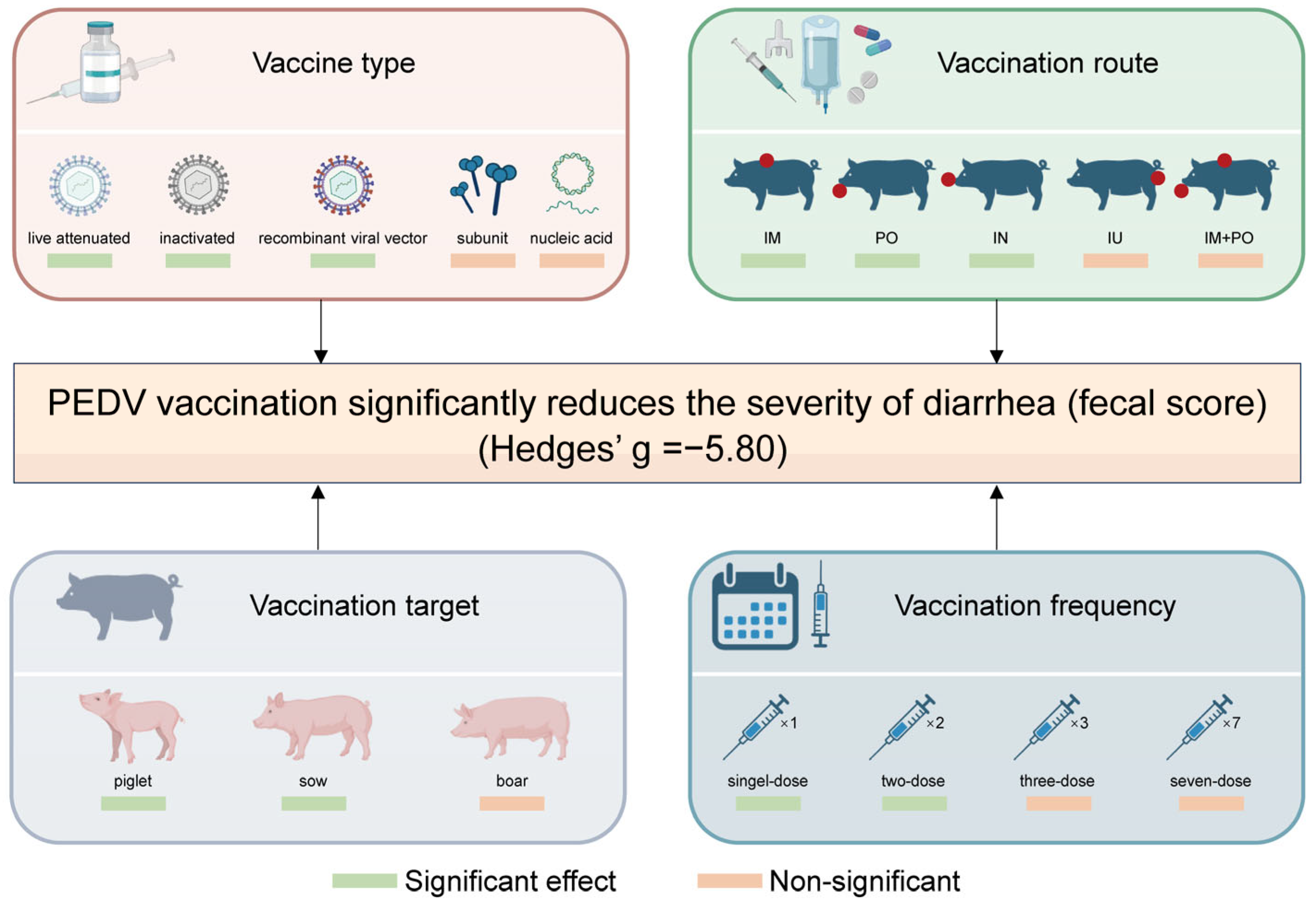 Li S, Niu S, Yao B, Chen Q, Ma W, Luo J, Zheng H, Xu G, Wu T, Yao W, et al. A Systematic Review and Meta-Analysis of Porcine Epidemic Diarrhea Virus Vaccine Efficacy and Its Modifiers. Animals. 2025; 15(24):3592. https://doi.org/10.3390/ani15243592