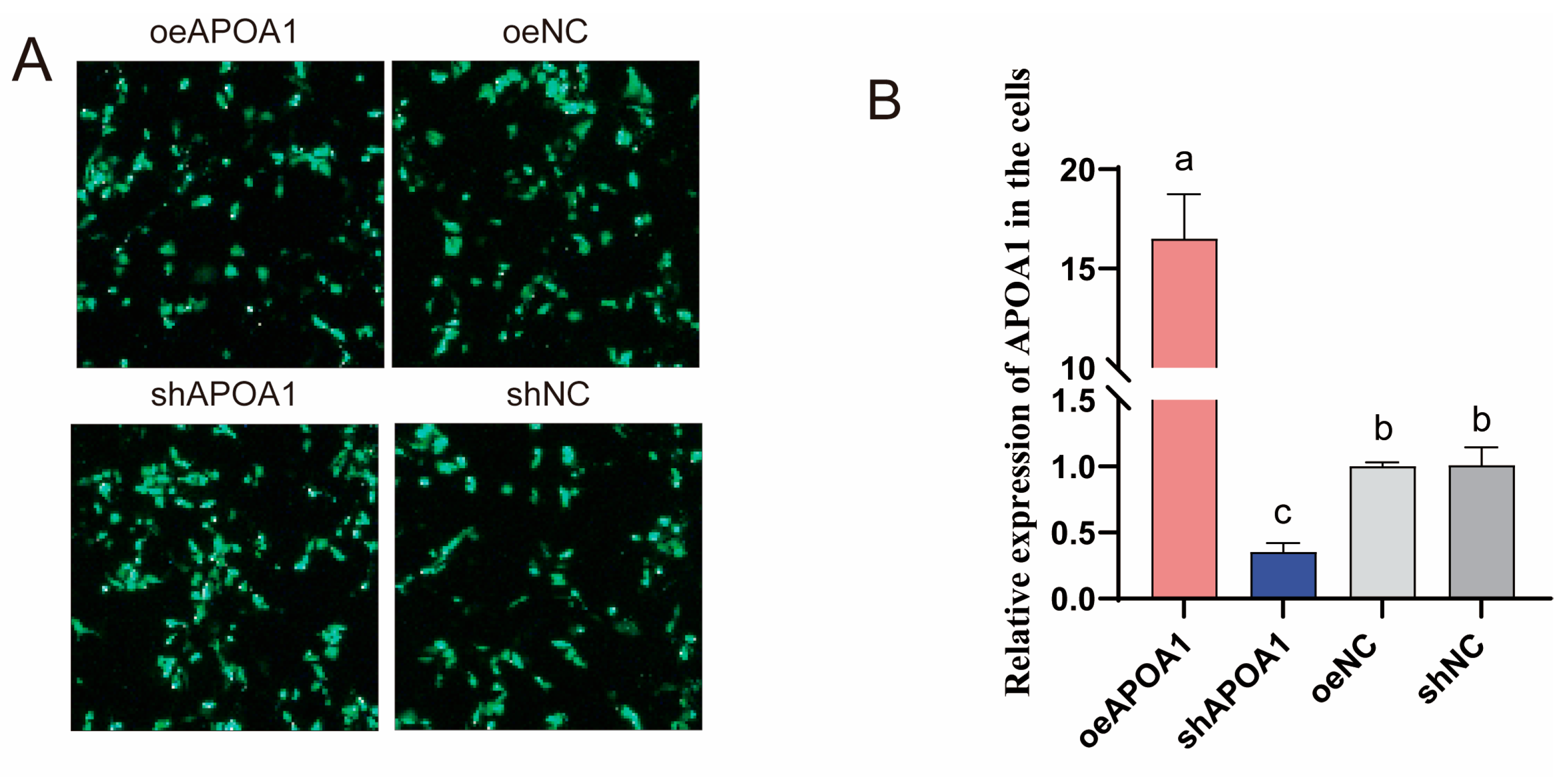2.6. Overexpression and Knockdown of APOA1 Gene in Duck Primary Hepatocytes