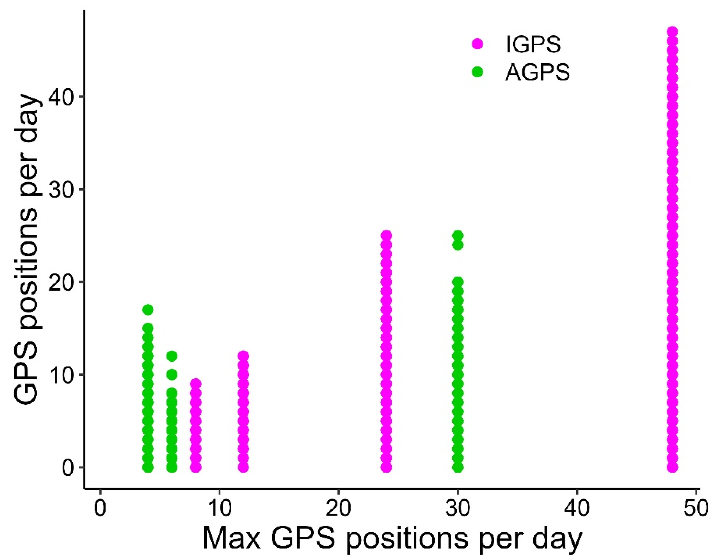 | IRIDIUM-GPS | Ei | Foraging | 761 | 8436 | 11.09 | 3 |