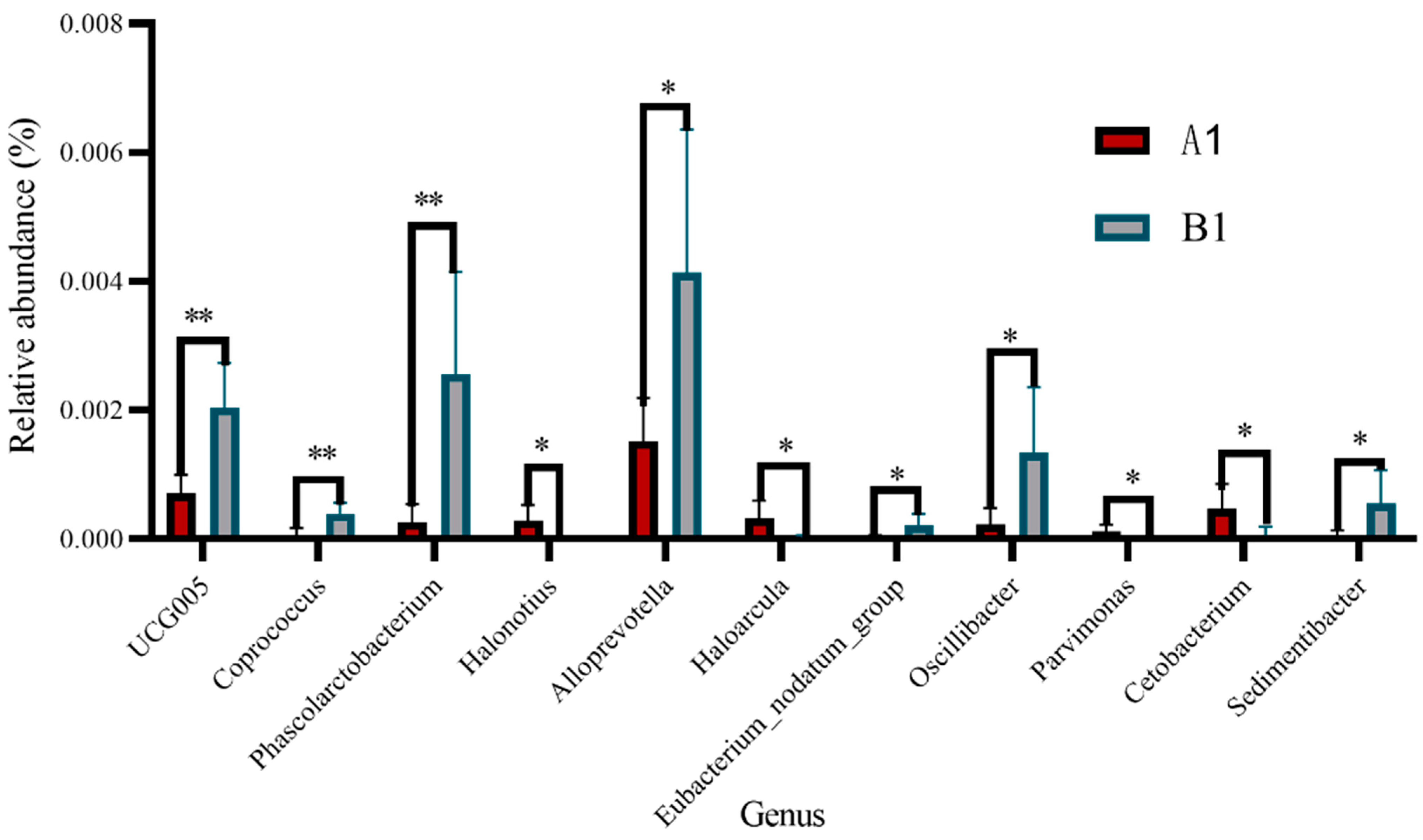 3.3. Bacteria Related to Lipid Metabolism at the Genus Level