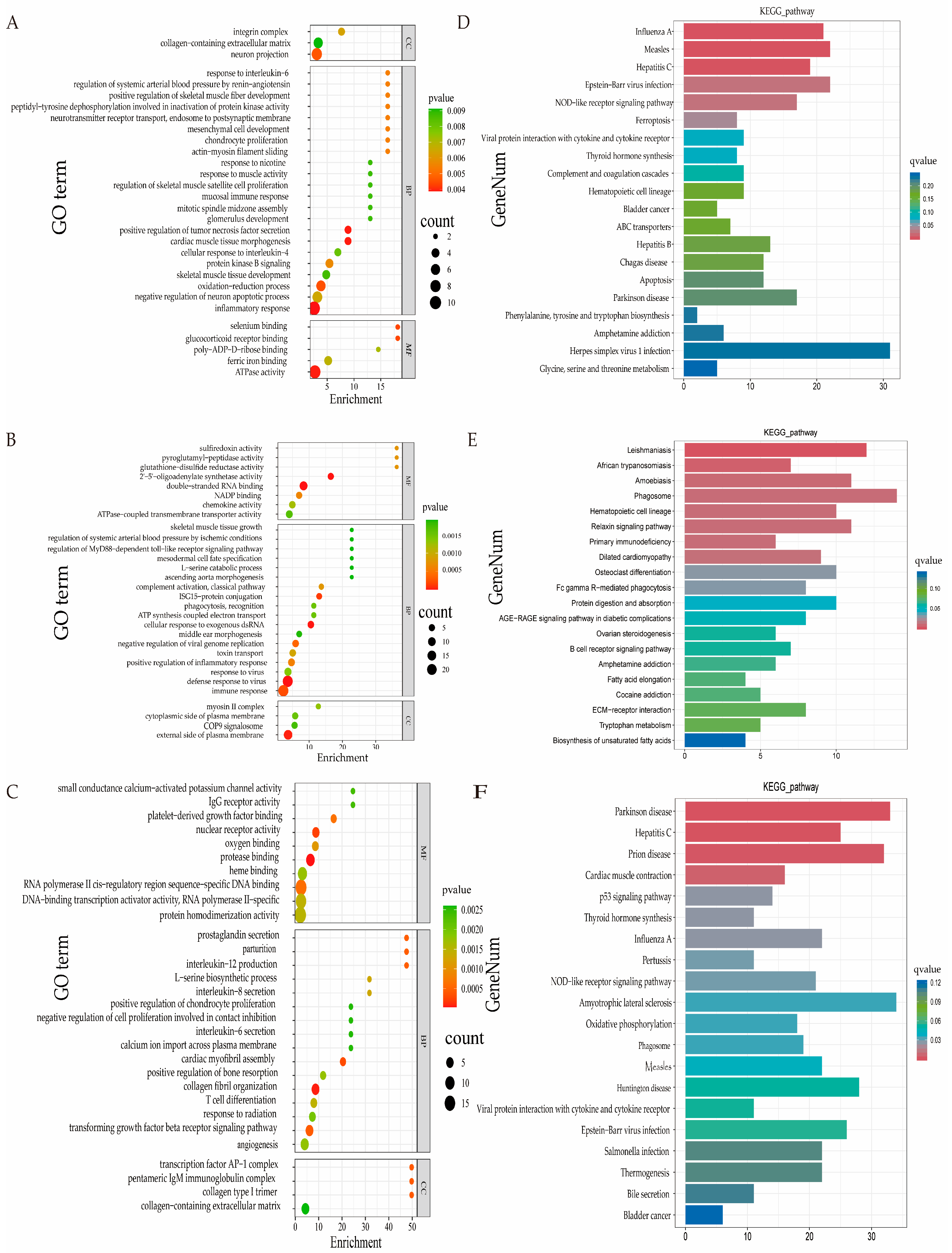 GO and KEGG functional enrichment analyses of DEGs were performed using the ClusterProfiler and pathview packages in R software (version 4.3.1), respectively. A significance threshold of p < 0.05 was applied to determine the statistical significance of enriched Gene Ontology (GO) terms and Kyoto Encyclopedia of Genes and Genomes (KEGG) pathways. Visualizations for the results of both GO and KEGG functional enrichment analyses were generated using the ggplot2 package in R. We focused on the GO terms that related to growth, development, and meat quality in the sheep.