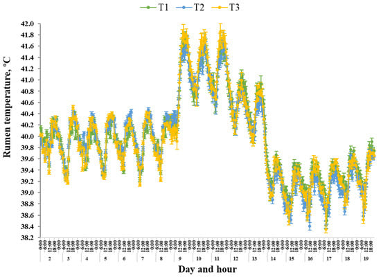 50]. Within the current study, the greater rumen pH of all Treatments could be attributed to the acute heat wave conditions, high T