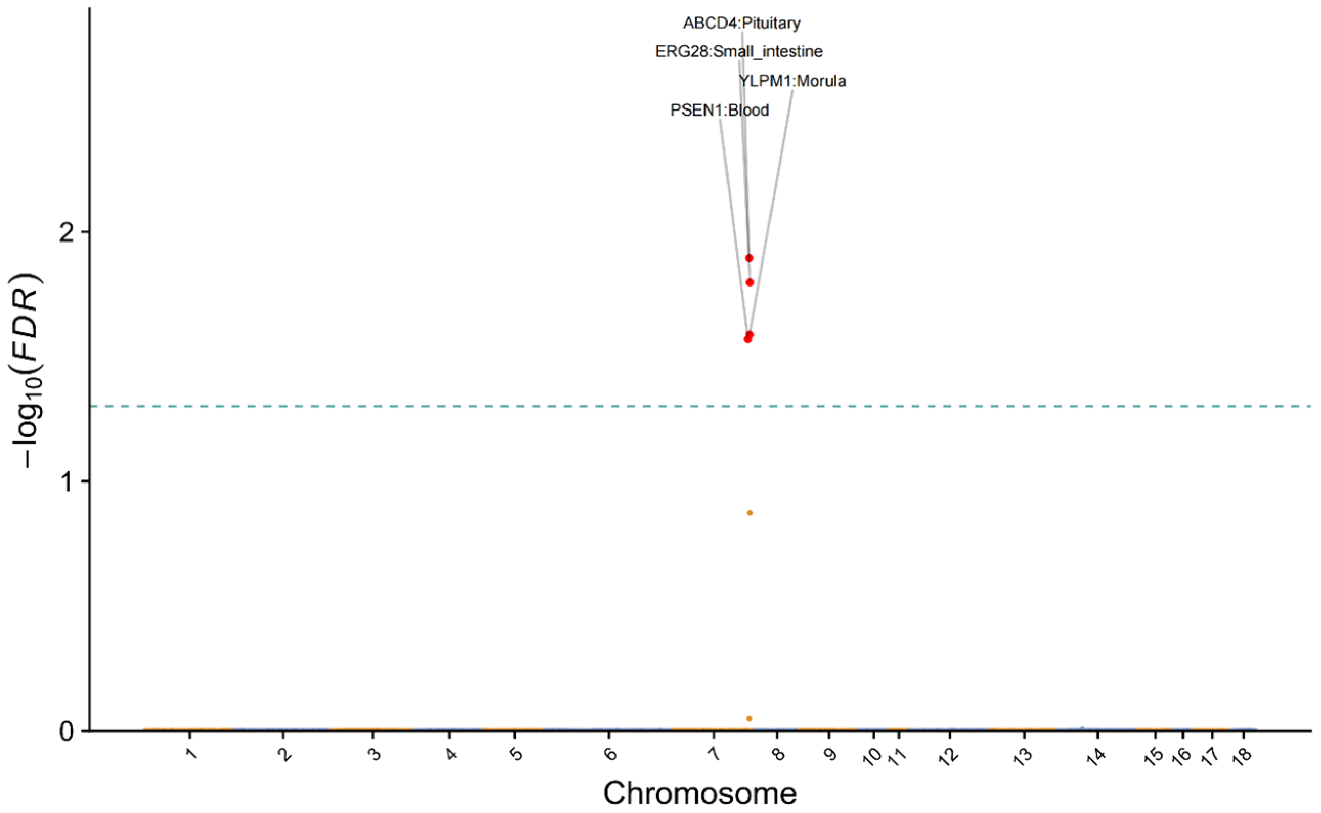 - Zhang, Z.; Chen, Z.; Teng, J.; Liu, S.; Lin, Q.; Wu, J.; Gao, Y.; Bai, Z.; FarmGTEx Consortium; Li, B.; et al. FarmGTEx TWAS-Server: An Interactive Web Server for Customized TWAS Analysis. Genom. Proteom. Bioinform. 2025, 23, qzaf006. [Google Scholar] [CrossRef]