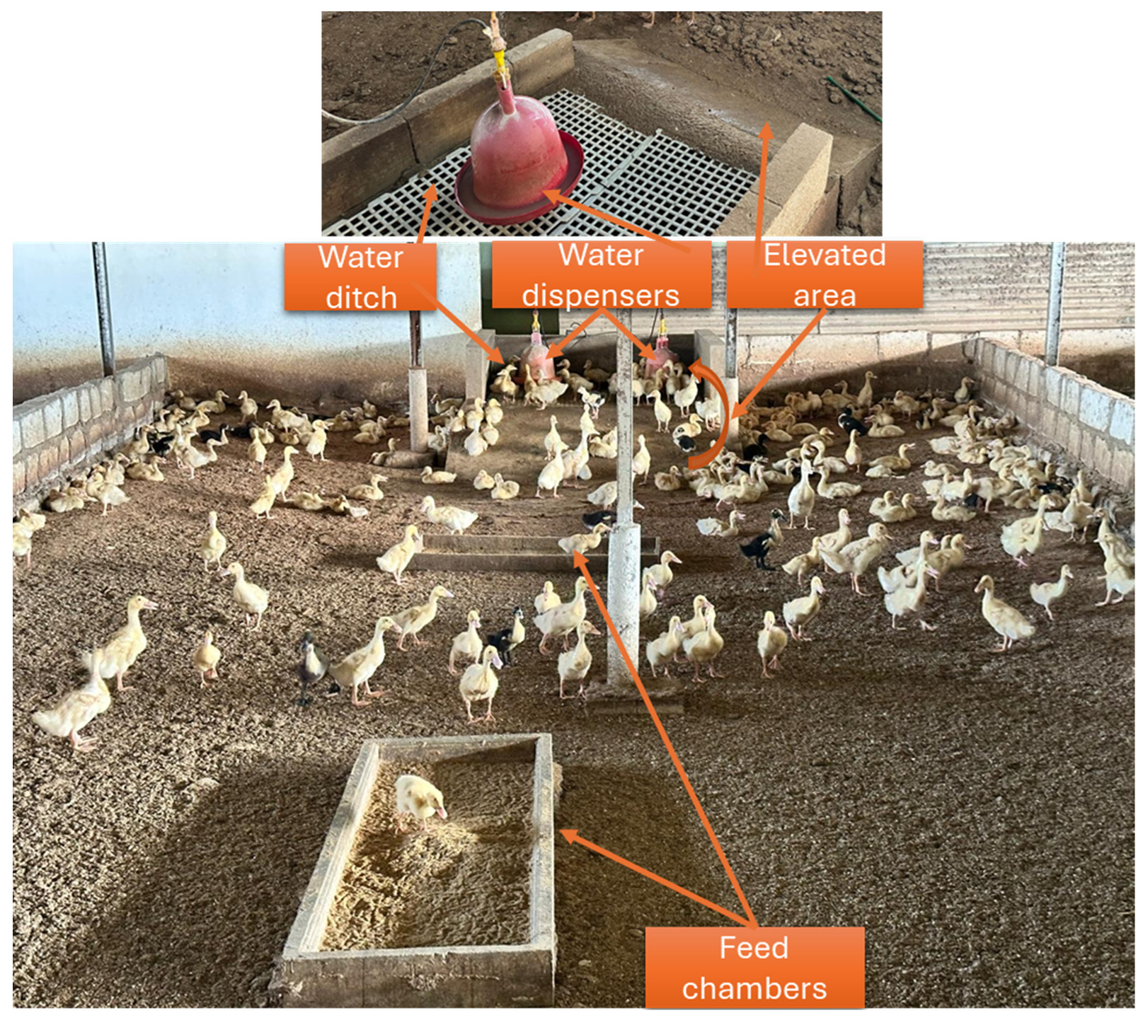 - Gajendran, K.; Veeramani, P. Intensive duck rearing. In Duck Production and Management Strategies; Springer: Berlin/Heidelberg, Germany, 2022; pp. 265–301. [Google Scholar]