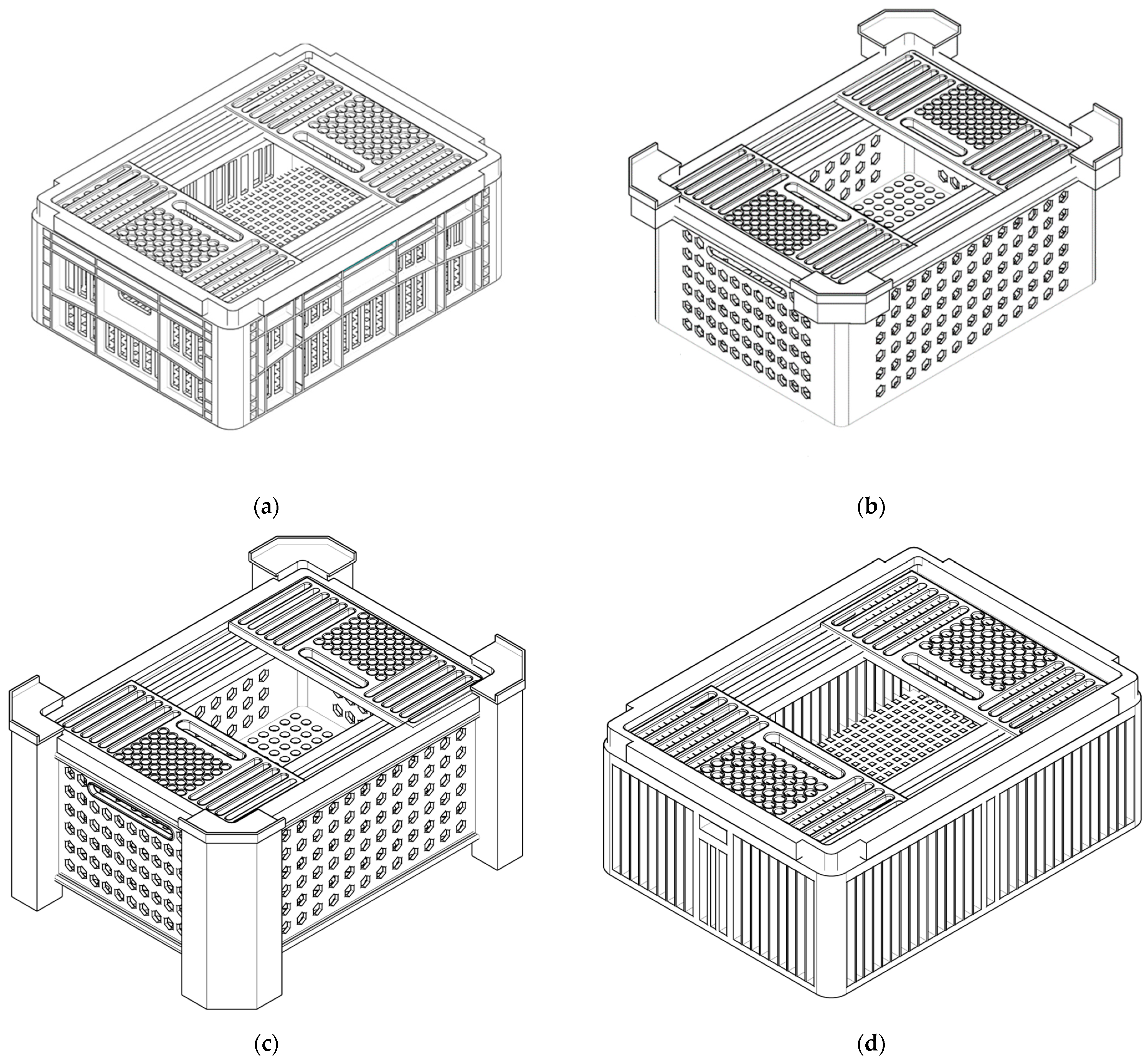 - Spurio, R.S.; Soares, A.L.; Carvalho, R.H.; Silveira Junior, V.; Grespan, M.; Oba, A.; Shimokomaki, M. Improving Transport Container Design to Reduce Broiler Chicken PSE (Pale, Soft, Exudative) Meat in Brazil. Anim. Sci. J. 2016, 87, 277–283. [Google Scholar] [CrossRef]