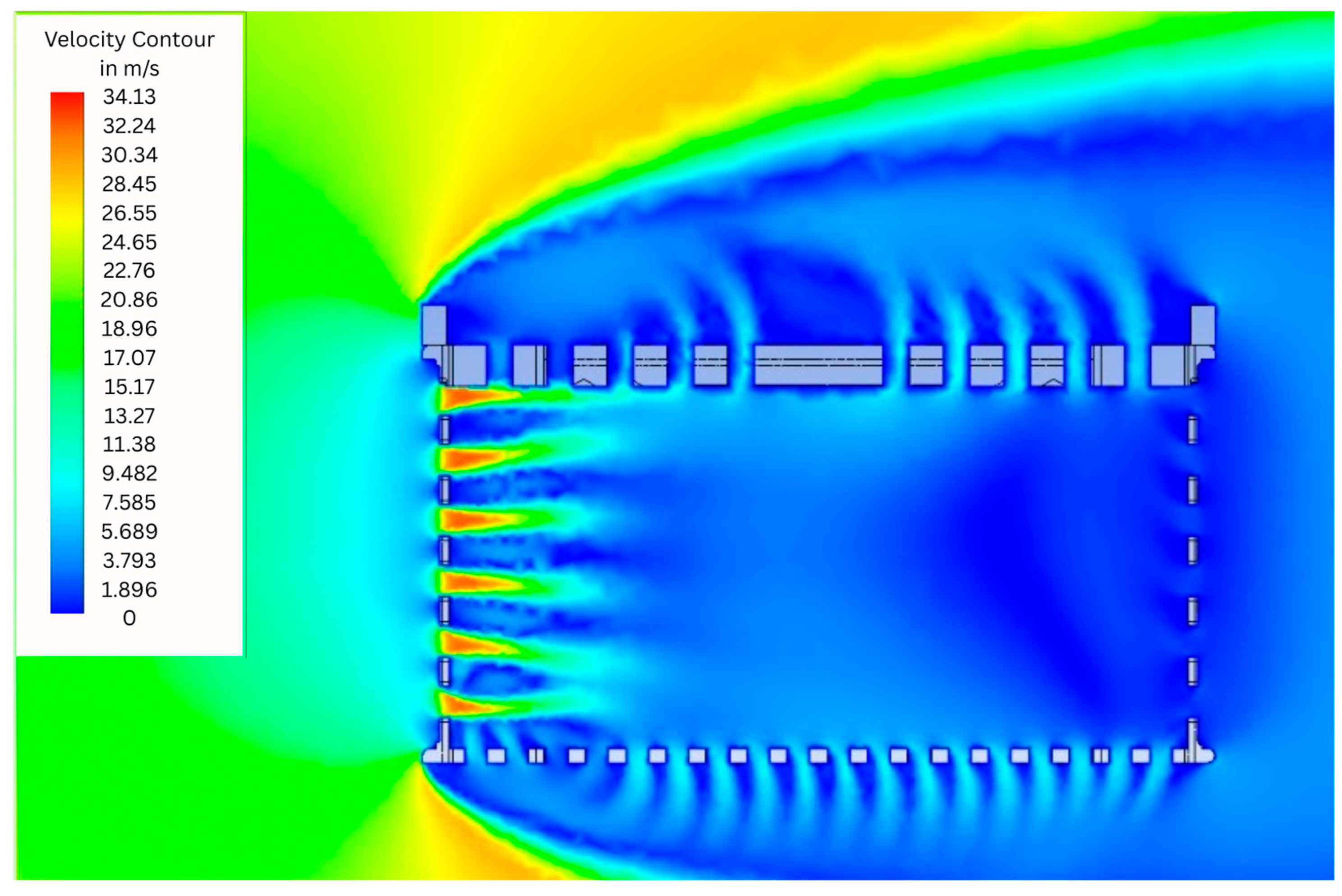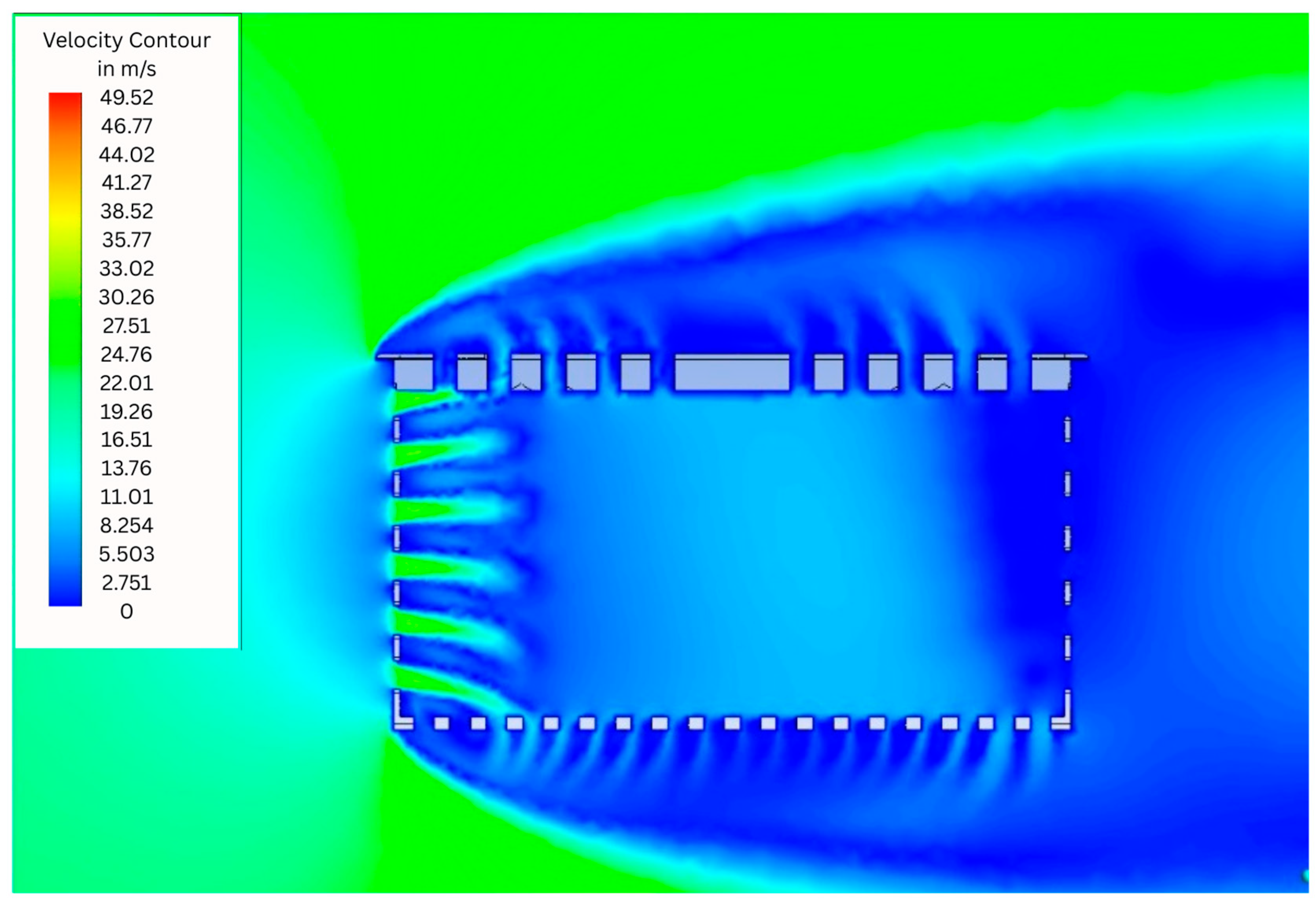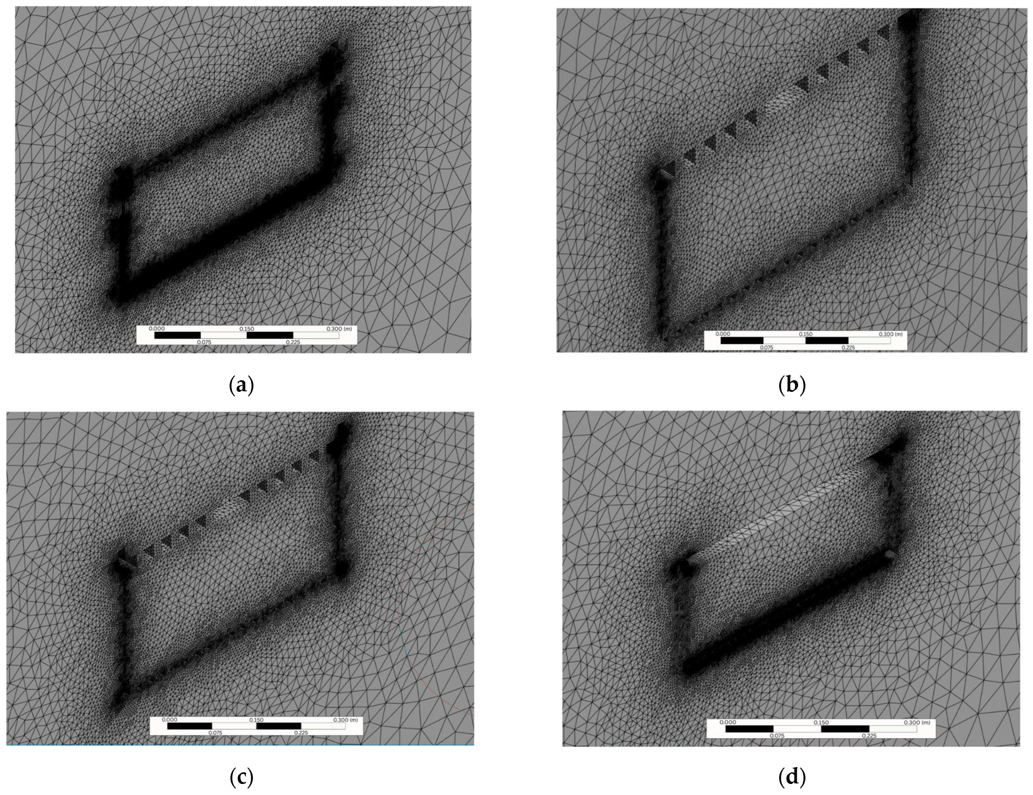 - Machado, N.A.F.; Barbosa Filho, J.A.D.; de Sousa, A.C.; de Sousa, A.M.; Corrêa, W.C.; Rodrigues, A.A.; Cunha, B.B. Numerical Evaluation of Aerodynamic Devices in Mitigating Heat Stress in Pigs During Transport. Eng. Agric. 2024, 44, e20230162. [Google Scholar] [CrossRef]