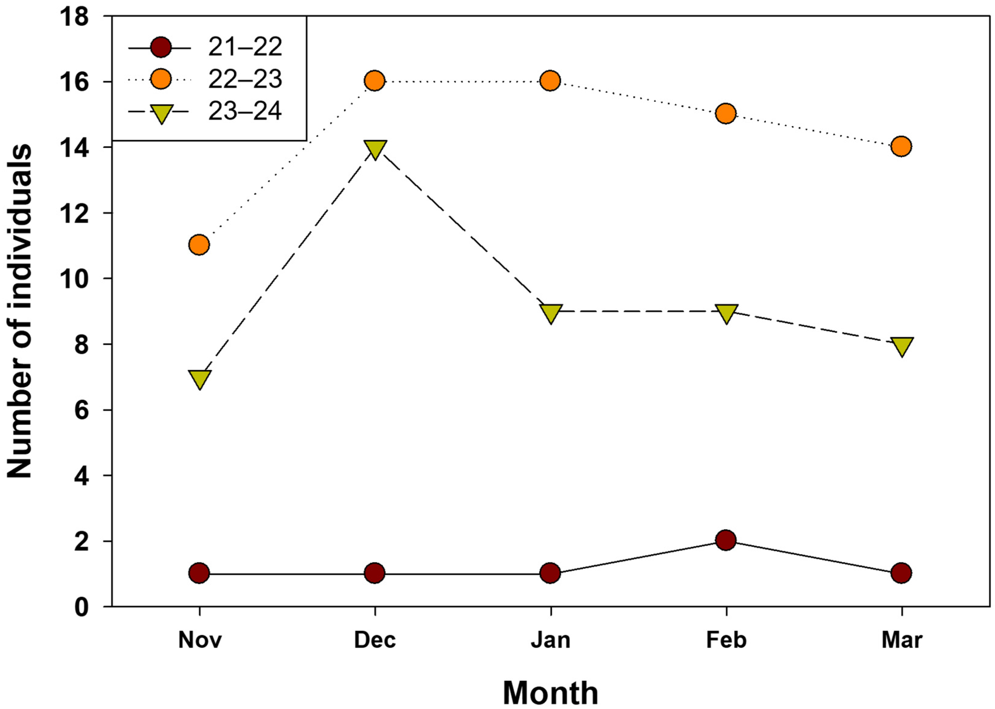 | Nov (n: 1) | Dec (n: 1) | Jan (n: 1) | Feb (n: 2) | Mar (n: 1) | Nov (n: 0) | Dec (n: 16) | Jan (n: 16) | Feb (n: 15) | Mar (n: 14) | Nov (n: 7) | Dec (n: 14) | Jan (n: 9) | Feb (n: 9) | Mar (n: 8) | |