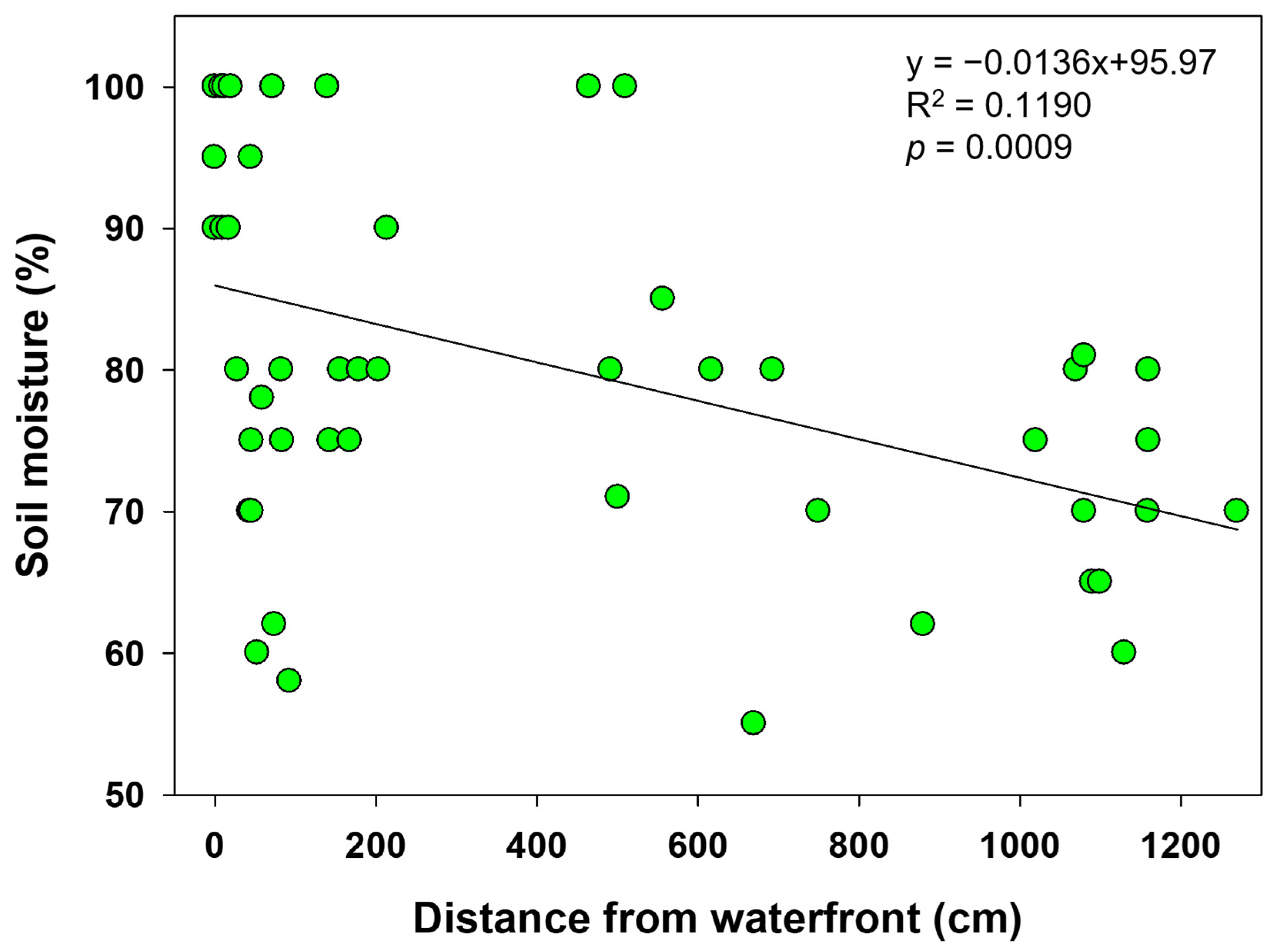 | Variable | BW (g) | Soil Depth (cm) | Soil Temp (°C) | Soil pH | Soil Moisture (%) | Distance from the Waterfront (cm) | Avg Daily Temp (°C) |