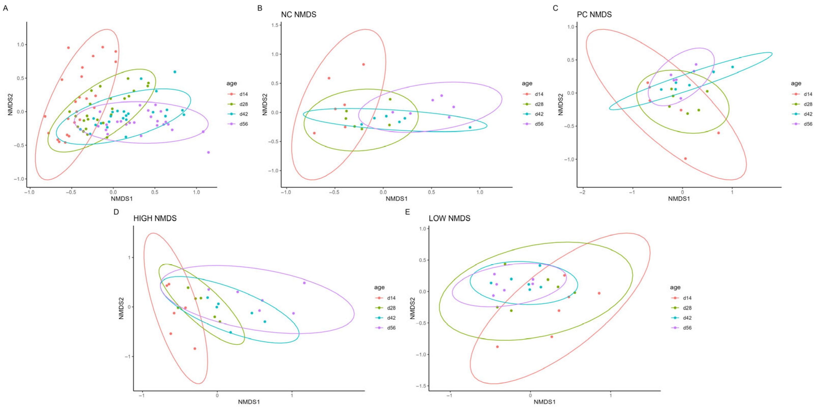- Meng, J.-X.; Li, M.-H.; Wang, X.-Y.; Li, S.; Zhang, Y.; Ni, H.-B.; Ma, H.; Liu, R.; Yan, J.-C.; Li, X.-M.; et al. Temporal variability in the diversity, function and resistome landscapes in the gut microbiome of broilers. Ecotoxicol. Environ. Saf. 2025, 292, 117976. [Google Scholar] [CrossRef]