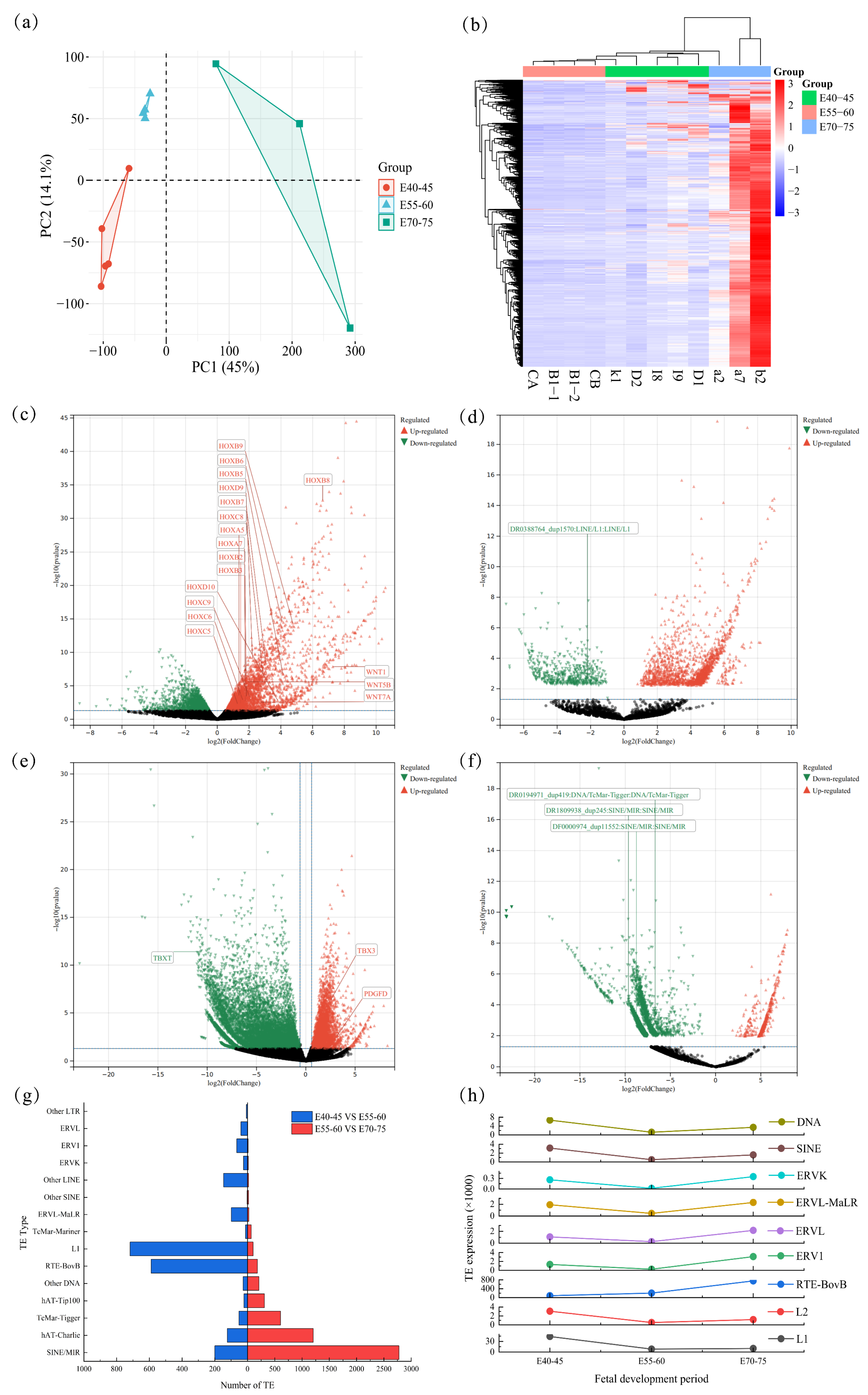 3.2. Distinct Developmental Clustering and Stage-Specific Transposable Element Expression