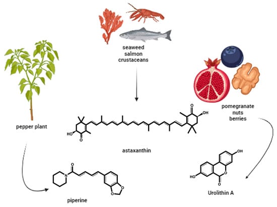 Polyphenols are secondary plant metabolites that are mostly involved in defense against oxidative stress and are found largely in fruits, vegetables, cereals and beverages [102,123,124]. Over the last few years, several studies have found that foods rich in polyphenols protect against age-related diseases, such as atherosclerosis, cardiovascular disease, cancer, arthritis, cataracts, osteoporosis, type 2 diabetes mellitus, hypertension, Alzheimer’s disease and diseases with mitochondrial etiology [102,125].