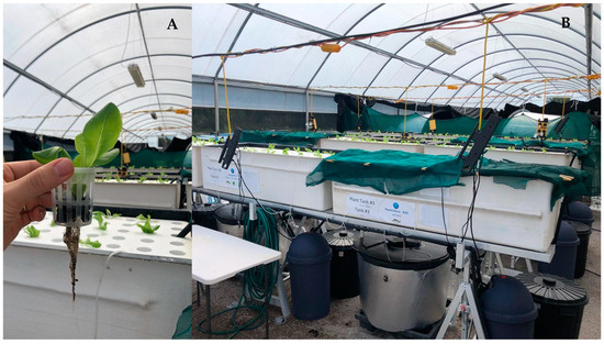 In the current study, the hydroponics treatment outperformed the two aquaponics treatments in both crops, e.g., presenting higher total wet weight and total length. Some hypotheses suggest that a more suitable pH, fewer solids in the water (as per turbidity levels), lower sodium concentration and more balanced nutrient concentration, e.g., S and K, contributed to the enhanced performance in hydroponics.