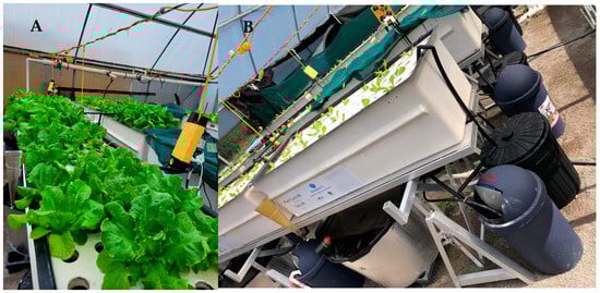 - Tsoumalakou, E.; Mente, E.; Kormas, K.A.; Katsoulas, N.; Vlahos, N.; Kapsis, P.; Levizou, E. Precise Monitoring of Lettuce Functional Responses to Minimal Nutrient Supplementation Identifies Aquaponic System’s Nutrient Limitations and Their Time-Course. Agriculture 2022, 12, 1278. [Google Scholar] [CrossRef]