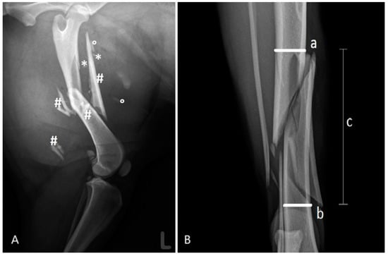 - Millard, R.P.; Weng, H.Y. Proportion of and risk factors for open fractures of the appendicular skeleton in dogs and cats. J. Am. Vet. Med. Assoc. 2014, 245, 663–668. [Google Scholar] [CrossRef] [PubMed]