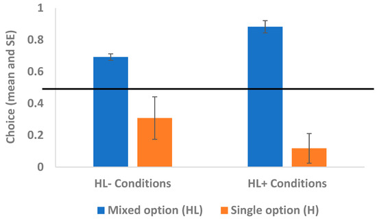 3.3. Control Trials for Quantitative Discrimination (HH vs. H; L+L+ vs. L+; L− L− vs. L−)