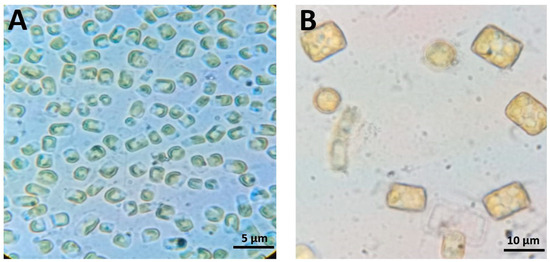 3.1. Morphological Identification of the Microalgae Used
