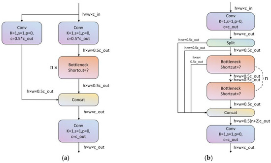 C3 and C2f modules. (a) Module C3; (b) module C2f.