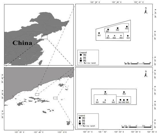 - Xi, X.H.; You, G.G.; Zhao, D.Y.; Kong, C.R.; Liu, M. Research on the construction of marine ranch in Changhai County from the perspective of ecology. J. Fish. 2018, 31, 43–47. [Google Scholar]