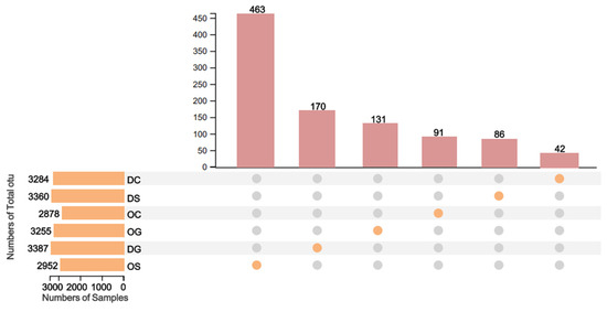 - Conway, J.R.; Lex, A.; Gehlenborg, N. UpSetR: An R package for the visualization of intersecting sets and their properties. Bioinformatics 2017, 33, 2938–2940. [Google Scholar] [CrossRef] [PubMed]