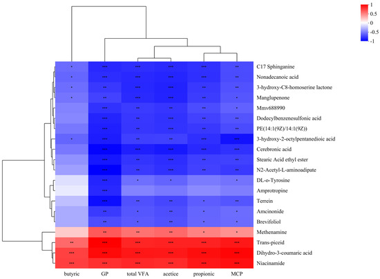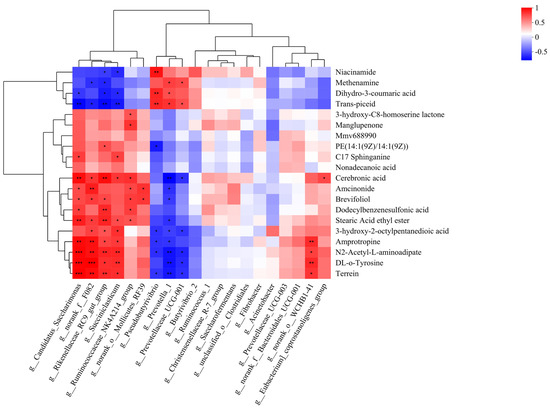 3.5. Correlation Analysis Between Rumen Microbial Composition and Differential Metabolites