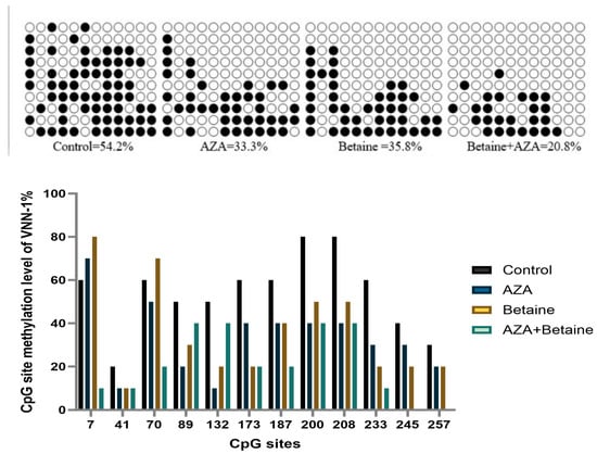 Figure 3 shows that the promoter region of the VNN1 gene in the AZA group was hypomethylated (33.3%) in comparison with the control group.