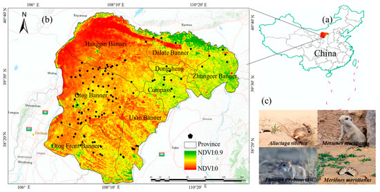 The Ordos Plateau of Inner Mongolia, China, holds significant ecological functions and economic value. With a northwest–high, southeast–low terrain and diverse landforms, it features unique climate characteristics, including strong continentality, low and uneven precipitation, abundant sunlight, relatively strong winds, and intense evaporation, all of which have given rise to vast desert steppes. These grasslands not only shape the landscape but also provide habitats for a diverse range of highly adaptive small rodents. Their presence plays a crucial role in the ecosystem, influencing soil structure and plant regeneration, and contributing to the delicate ecological balance of the desert steppe [9].