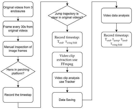 | 3. Video Clip Extraction | Based on the recorded timestamps, FFmpeg was used to extract the corresponding video segments from the original video, covering the entire jump process from the hens facing the landing platform to the completion of the jump and balance maintenance. |