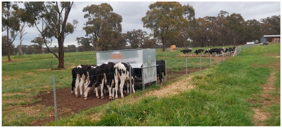 This study was conducted at the University of Melbourne Dookie Dairy Farm, with approval from the University of Melbourne Animal Ethics Committee (AEC ID: 2023-27060-43375-3). The Dookie Dairy Farm is in the Southern Hemisphere, in the state of Victoria, Australia on latitude 36.4° S and longitude 145.7 °E (940 Dookie-Nalinga Road, Dookie College, VIC 3647, Australia). The dairy farm has a 43-hectare irrigated pasture with annual average rainfall of 540 mm. The area surrounding the dairy farm is level, with either short grass or bare soils. The mean daily minimum and maximum air temperatures are 10 and 21 °C, respectively.