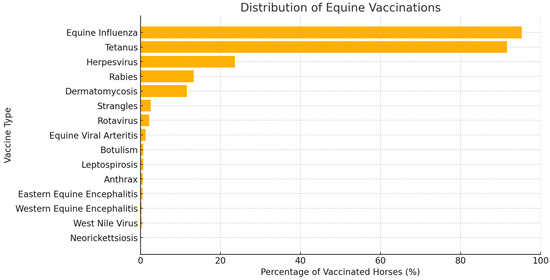 A potential limitation of this study is the accuracy of vaccination records documented in horse passports. While passports are required to be updated during vaccination, in practice, some owners may not have the passport with them at the time of vaccination, leading to discrepancies between official records and actual vaccination status. This could result in underreporting or incomplete data in passport-based assessments. Future studies should consider verifying vaccination status through veterinary records or direct owner declarations to improve data reliability.