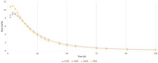 - Groot, J.C.; Williams, B.A.; Oostdam, A.J.; Boer, H.; Tamminga, S. The use of cumulative gas and volatile fatty acid production to predict in vitro fermentation kinetics of Italian ryegrass leaf cell walls and contents at various time intervals. Br. J. Nutr. 1998, 79, 519–525. [Google Scholar] [CrossRef]