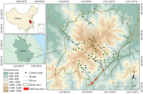 - Liu, K.; He, J.; Zhang, J.H.; Feng, J.; Yu, Q.; Gu, C.M.; Wu, H.L. Mammal resource status in the mountain forest ecosystems of southern Anhui Province based on camera trap data. Biodivers. Sci. 2017, 25, 896–903. [Google Scholar] [CrossRef]