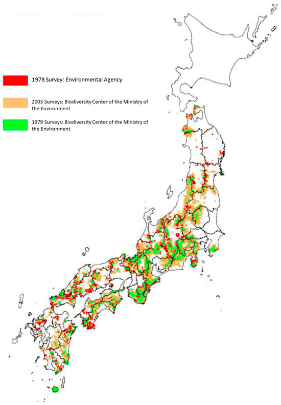 - Muroyama, Y.; Yamada, A. Conservation: Present Status of the Japanese Macaque Population and Its Habitat. In The Japanese Macaques; Nakagawa, N., Nakamichi, M., Sugiura, H., Eds.; Springer: Tokyo, Japan, 2010; pp. 143–164. ISBN 978-4-431-53886-8. [Google Scholar]