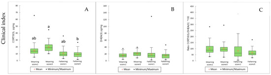 APA StyleScollo, A., Cotticelli, A., Peric, T., Perrucci, A., Prandi, A., & Ferrari, P. (2025). Hair Dehydroepiandrosterone Sulfate (DHEA(S)) and Cortisol/DHEA(S) Ratio as Long-Lasting Biomarkers of Clinical Syndromes Exhibited by Piglets Early in Life. Animals, 15(7), 1032. https://doi.org/10.3390/ani15071032