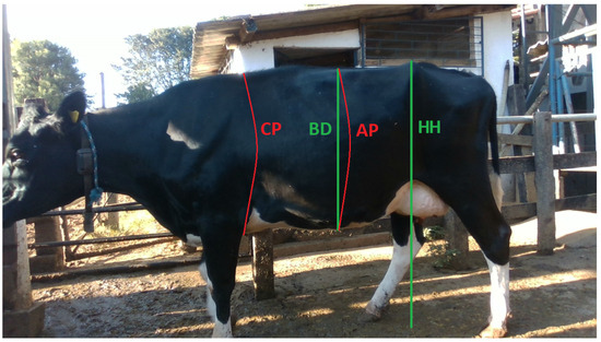 - Ozkaya, S.; Neja, W.; Krezel-Czopek, S.; Oler, A. Estimation of bodyweight from body measurements and determination of body measurements on Limousin cattle using digital image analysis. Anim. Prod. Sci. 2015, 56, 2060–2063. [Google Scholar]